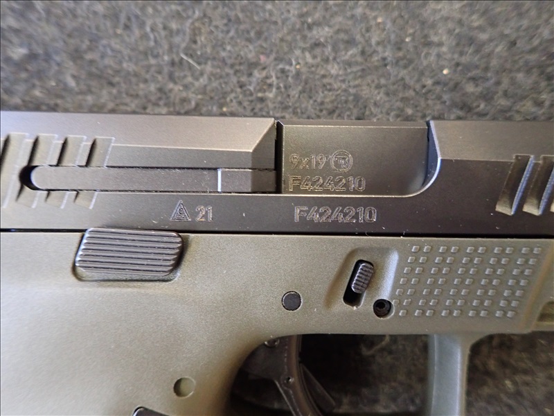 9MM 4.5" PISTOL, NIGHT SIGHTS, OLIVE DRAB GREEN FRAME/BLACK SLIDE, BACK STRAP, 10 ROUND MAGAZINE