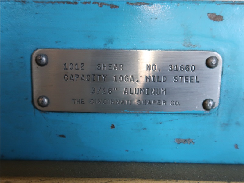 10 GA. MILD STEEL HYDRAULIC SHEAR, 3/16" ALUMINUM, FOOT CONTROLS, GAUGE