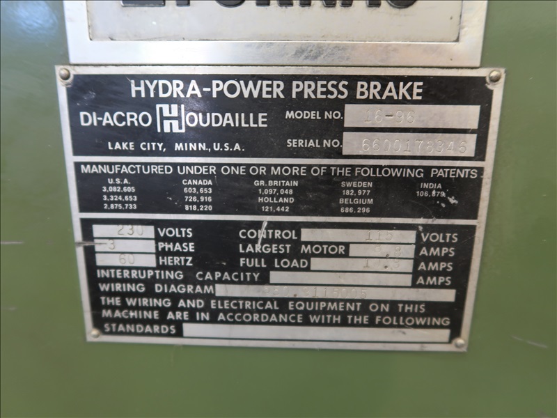 35-TON HYDRAULIC PRESS BRAKE, 8' BED, HURCO AUTOBEND 5S ELECTRONIC DIGITAL CONTROLS, 230V, 60 HZ, 3-PHASE