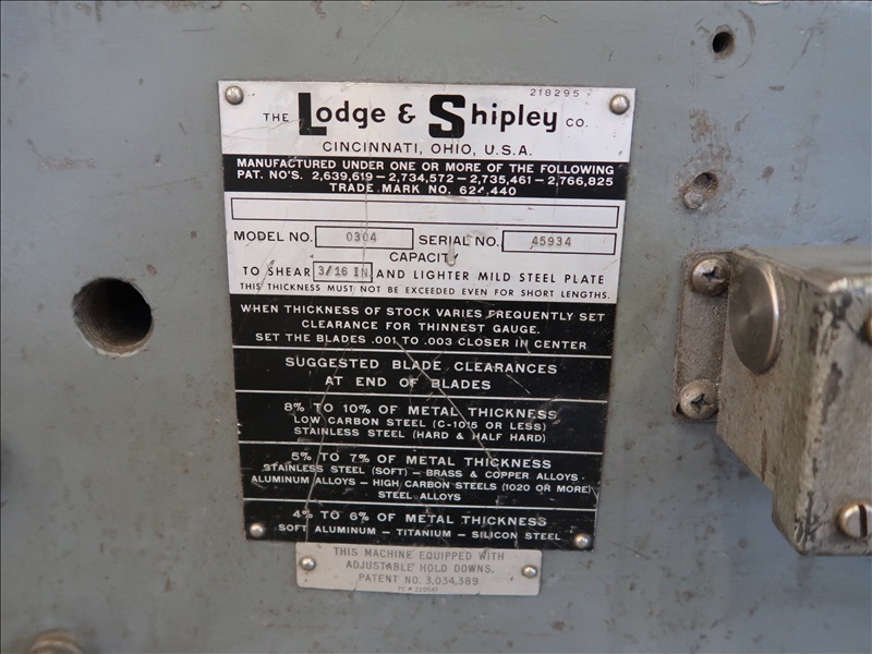 HYDRAULIC POWER SQUARING SHEAR, 3/16" CAP., 52" BED, FOOT CONTROLS