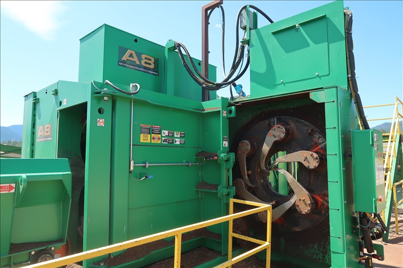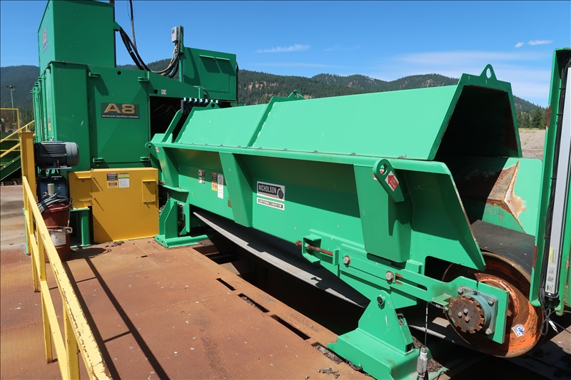 RING DEBARKER, 6-ARM W/AIR SEAL RING, 3-1/2"-25" LOG DIA., 7-1/2' MIN. LENGTH, 300-500 FPM, 150 HP/1,200 RPM RING DRIVE, 75 HP FEED ROLL DRIVE, (8) FEED ROLLS, AIR PRESSURE MANAGEMENT SYSTEM, AUTO LUBE, 2019 NICHOLSON 24"X16' CENTERING INFEED CONVEYOR W/TECO 25 HP MOTOR TO SM CYCLO 21:1 RATIO REDUCER, 2019 24" X APPROX. 68' OUTFEED LOG HAUL W/(2) SPIKED PICK UP ROLLS, (2) BRUNETTE ELS 3-ARM LOG KICKERS W/MARATHON 40 HP MOTOR TO REX POLARIS 48 RPM REDUCER & (2) NORD DRIVES, 80 HP HYDRAULIC UNIT, NICHOLSON LUBE UNIT, CONTROLS W/HDMI, SPARE PARTS