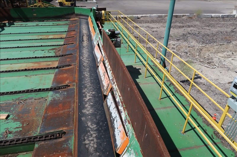 APPROX. 24"X68' LOG HAUL BELT W/(2) SPIKE PICK UP ROLLS, (2) BRUNETTE ELS 3-ARM LOG KICKERS W/MARATHON 40 HP MOTOR TO REX POLARIS 48 RPM REDUCER, (2) NORD 15 HP GEARHEAD MOTORS