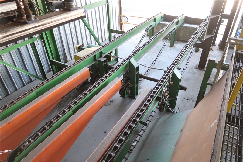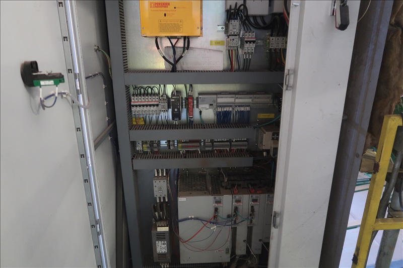 TRAVELING VACUUM UNSTACKER TO PLANER W/APPROX. 9'X9' VACUUM ASSEMBLY W/9' 2-ARM BREAKDOWN HOIST, INFEED & OUTFEED TRANSFERS, STICKER RAKE OFF STATION, 2-SAW END TRIM STATION, ALLEN BRADLEY KINETIX 5700 SERVO PACKAGE, ALL DRIVES & SUPPORT EQUIPMENT (SAWMILL)