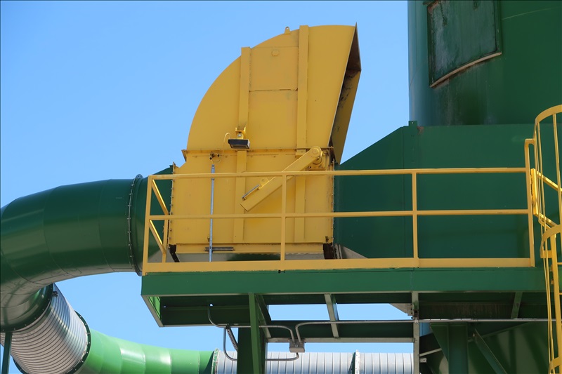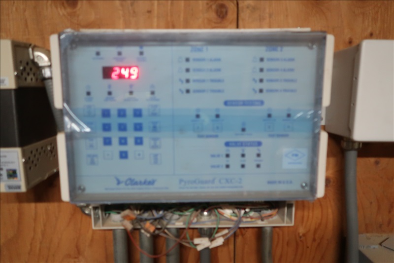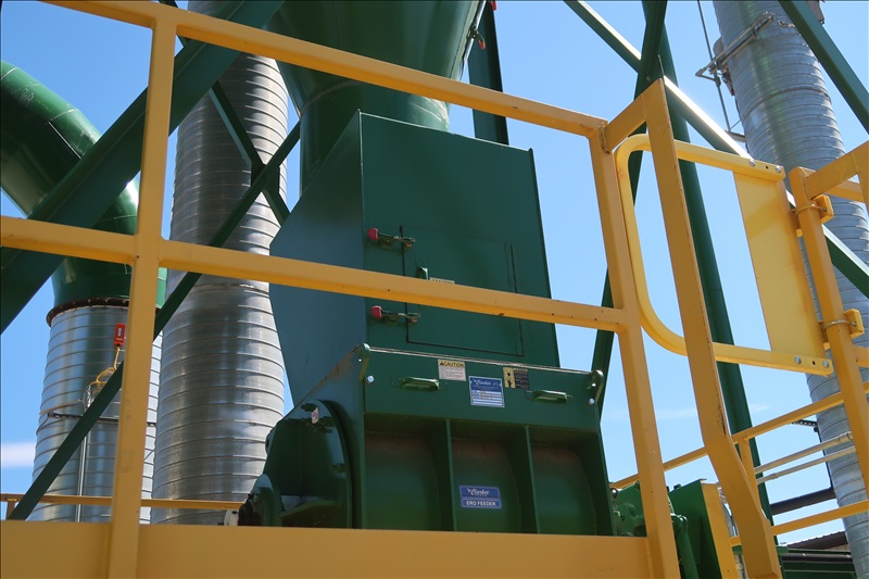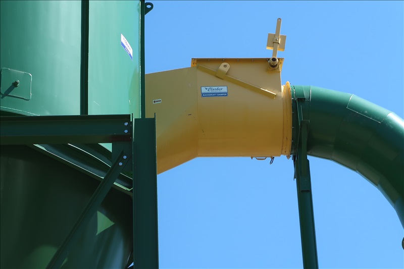 BAGHOUSE FILTER W/(144) 10' BAGS, ROTARY PULSE BAG CLEANER, 13' DIA., HIGH SPEED ABORT GATE, 36" SPIRAL PIPING, RADER 20"X20" ESW FEEDER, BAG BLOWER, INDUSTRIAL RTS365-105 FAN W/WEG 200 HP MOTOR, 36" SPIRAL PIPING FROM CLARKES 13' DIA. COLLECTION CYCLONE W/CLARKES ERO 30"X35" FEEDER, CLARKES PYROGUARD CXC2 4-STATION SPARK DETECTION SYSTEM