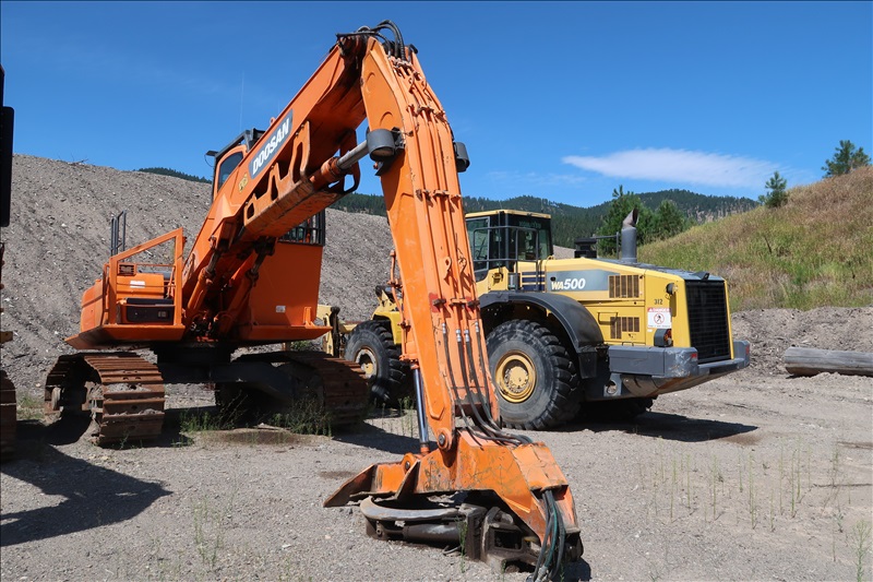 HEEL BOOM LOG LOADER W/SWIVEL GRAPPLES; DOOSAN DIESEL ENGINE, 27-1/2" DOUBLE GROUSER TRACKS, CAB & CYLINDER GUARDS, NEW TRACKS & ROLLERS