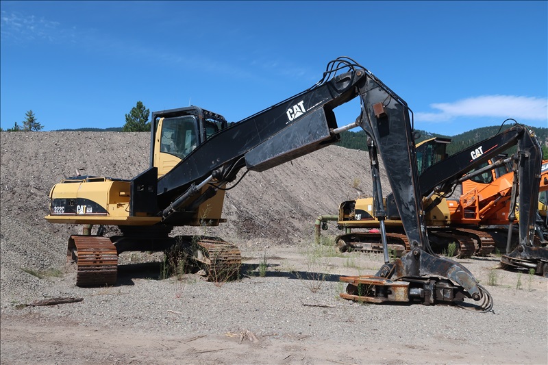 HEEL BOOM LOG LOADER W/SWIVEL GRAPPLES, CAT 3126 TURBO DIESEL ENGINE, 32" TRIPLE GROUSER TRACKS, CAB & CYLINDER GUARDS