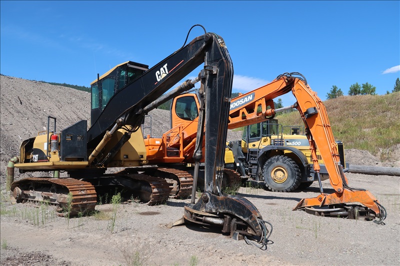 HEEL BOOM LOG LOADER W/SWIVEL GRAPPLES, CAT 3066 TURBO DIESEL ENGINE, 28" DOUBLE GROUSER TRACKS