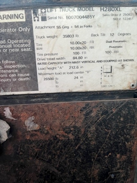 26,500 LB. CAP. FORKLIFT, PERKINS DIESEL ENGINE, 213" 2-STAGE MAST, FORK PLACERS, SIDE SHIFT, 48" FORKS, DUAL PNEUMATIC TIRES (LOCATED IN ATHOL, ID. MUST MAKE AN APPOINTMENT TO PREVIEW, PLEASE CONTACT CASEY NESBITT AT 208-699-8410)