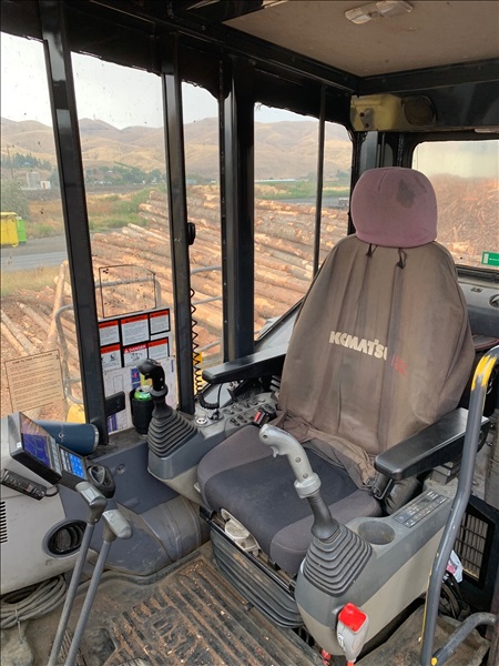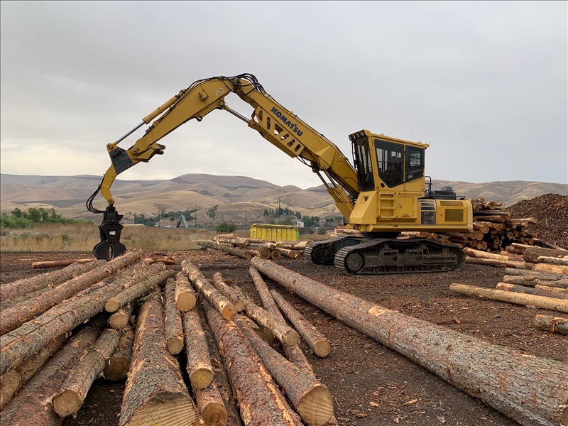 EXCAVATOR LOG LOADER, HEEL BOOM W/SWIVEL GRAPPLE, KOMATSUE DIESEL ENGINE (LOCATED IN LEWISTON, ID. MUST MAKE AN APPOINTMENT TO PREVIEW, PLEASE CONTACT AUSTIN BRITTON AT 208-533-8614)