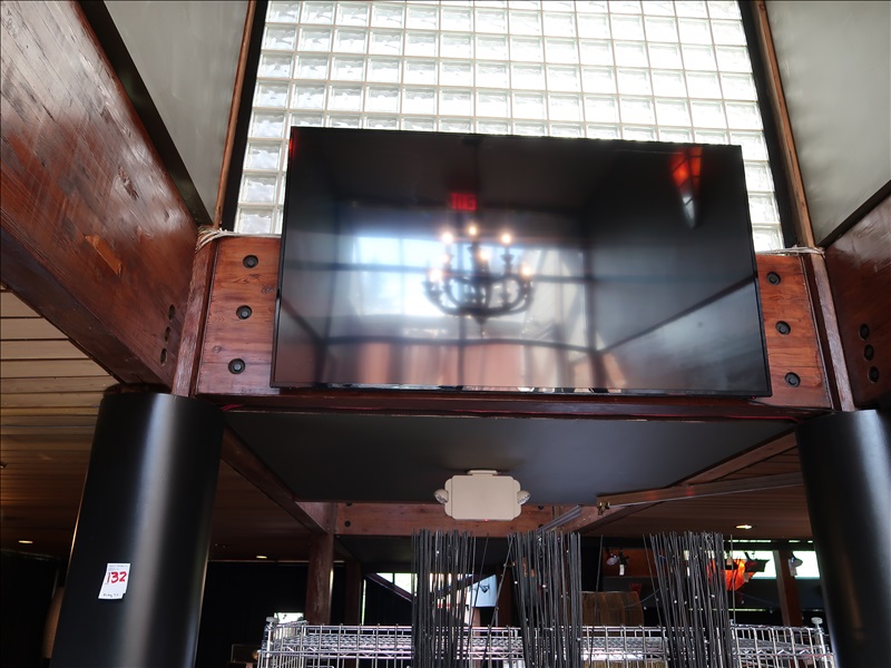 75" WALL MOUNTED TV (TV IS MOUNTED APPROX 14'H, BUYER IS RESPONSIBLE FOR (2) 12' LADDERS, TOOLS, HELP & REMOVAL, LOCATED IN ENTRY WAY)