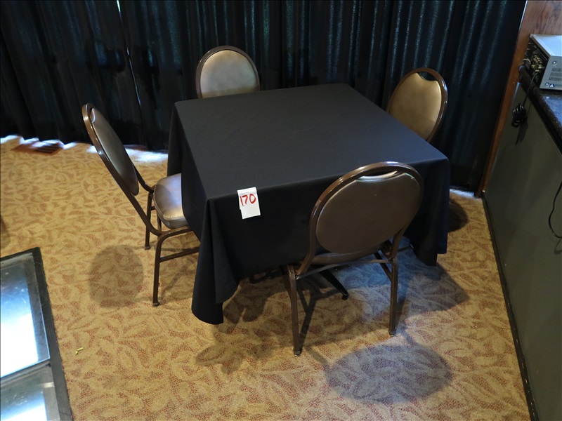 LOT, 36" X 36" DINING TABLE W/(4) METAL FRAMED PADDED DINING CHAIRS