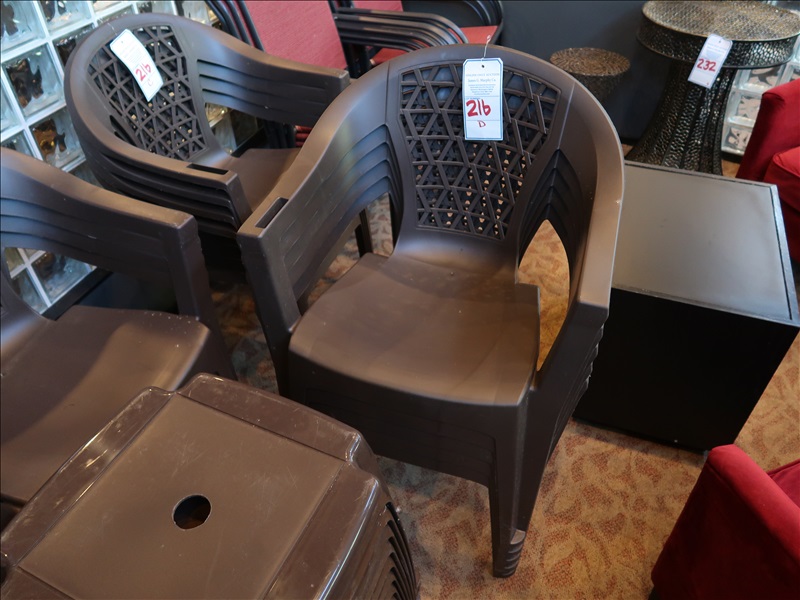 LOT, (4) RESIN STACKABLE PATIO CHAIRS (UNUSED)
