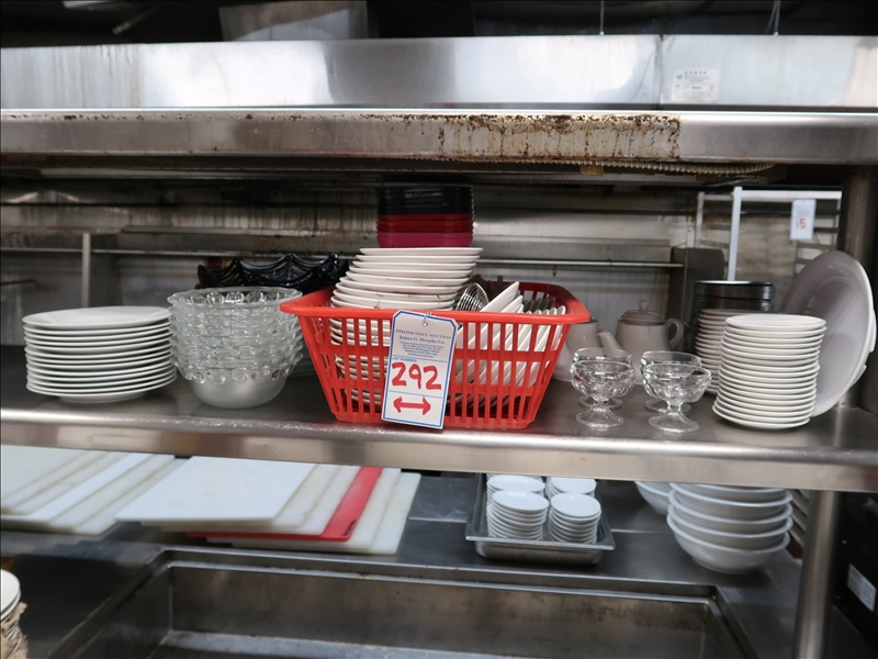 LOT, ASSORTED DISHWARE ON THIS SHELF