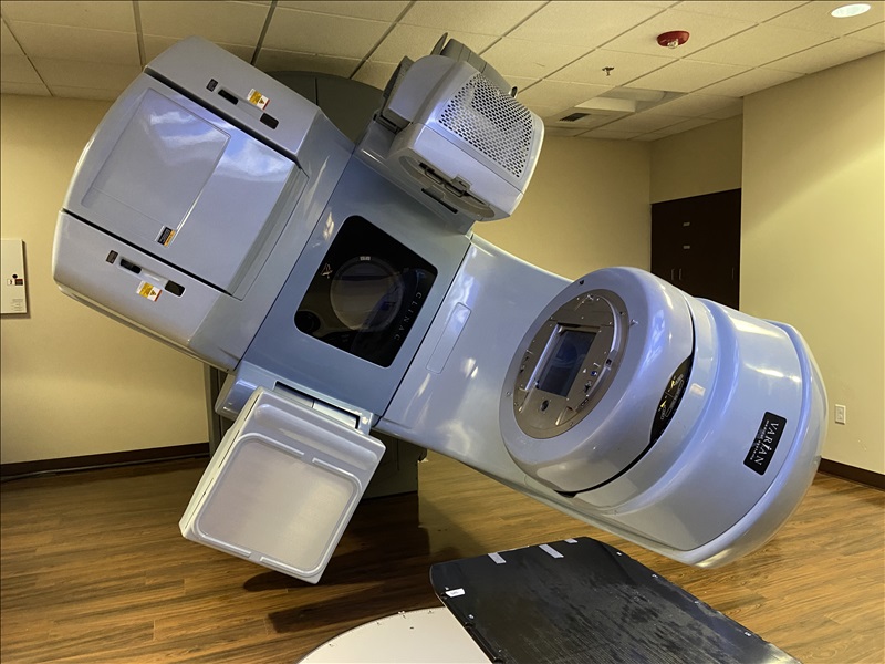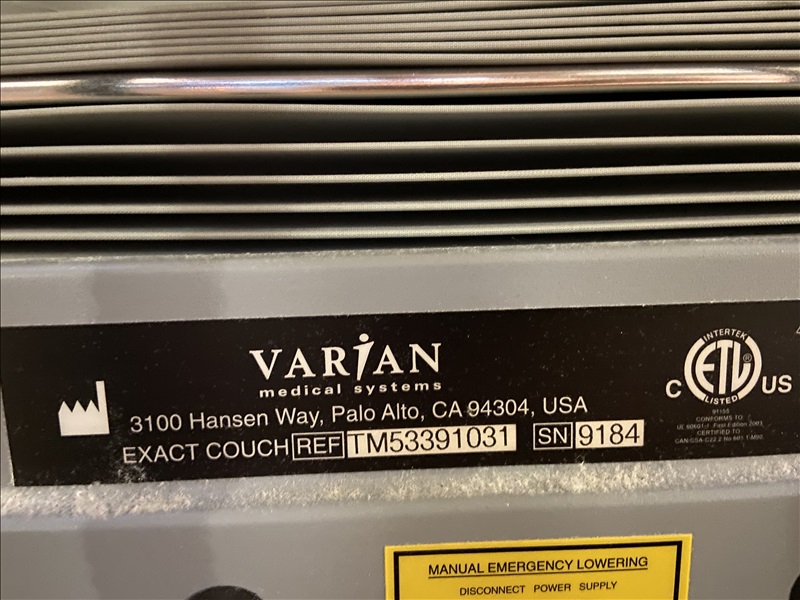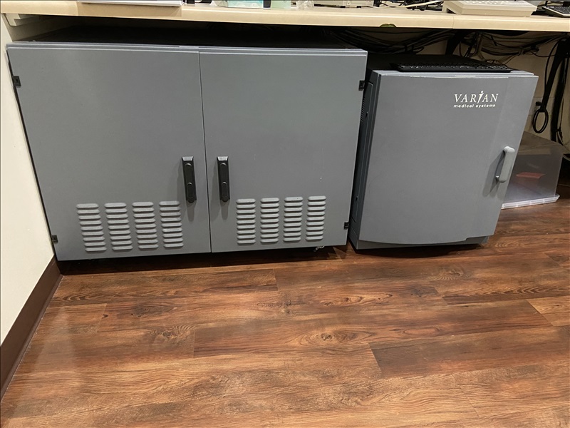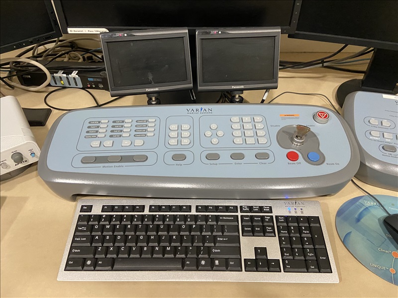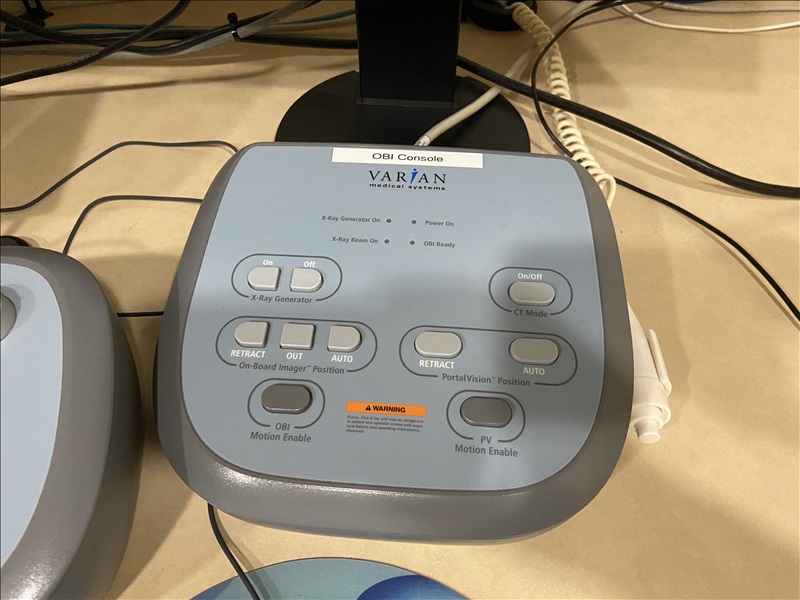 IMAGE-GUIDED RADIATION THERAPY & RADIOSURGERY LINEAR ACCELERATOR W/EXACT TREATMENT TABLE, LAP AOLLO REMOTE-CONTROLLED PATIENT POSITIONING LASER SYSTEM (W/4TH OPTION LASER UNIT), 4D CONSOLE, OBI IMAGING SYSTEM, POWER UNIT, AXIS MOVEMENT, EXACT ARMS, PANASONIC WV-CO360C SYSTEM CONTROLLER, OBI CONSOLE, VARIAN CONTROLS W/MONITORS, VARIAN HANDHELD CONTROLS, McGREGOR PHANTOM TM64026001 IMAGER, CARPHAM PHANTON MODULAR IMAGER, CLINAC STANDARDS, ACCESSORIES & SPARE PARTS