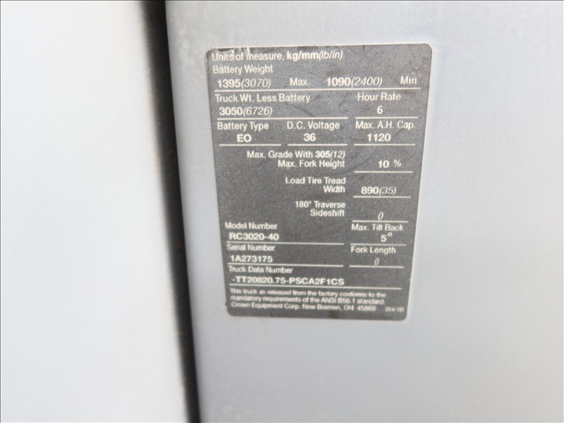 CROWN RC3020-40 ELECTRIC FORKLIFT