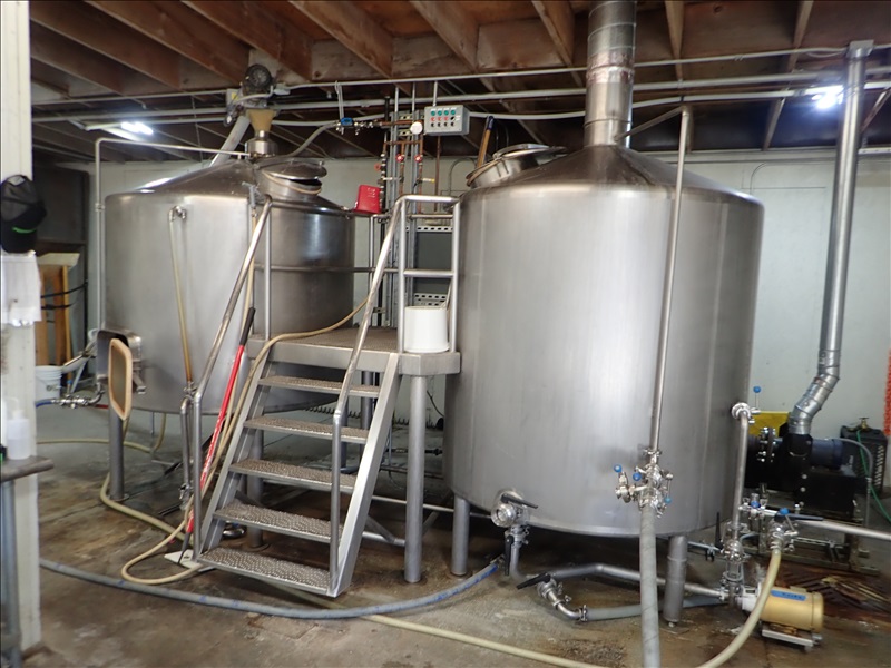 15 BARREL, 2-VESSEL BREWHOUSE, POWERFLAME DIRECT FIRE BURNER, AGC080-F HEAT EXCHANGER, KETTLE & MASH TRANSFER PUMPS, CATWALK, CONTROL PANELS, S/N: 0151