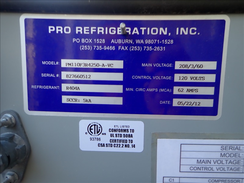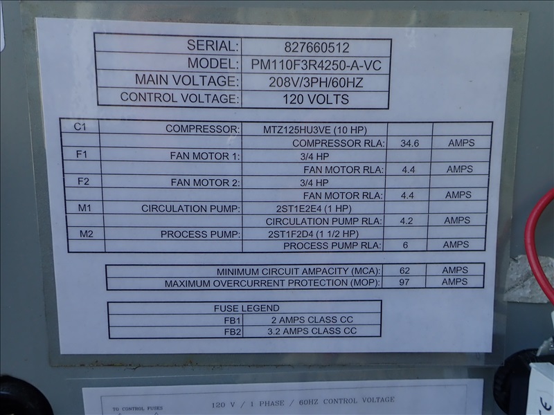 SKID MOUNTED GLYCOL CHILLER, R404A, CONTROLS, S/N: 827660512