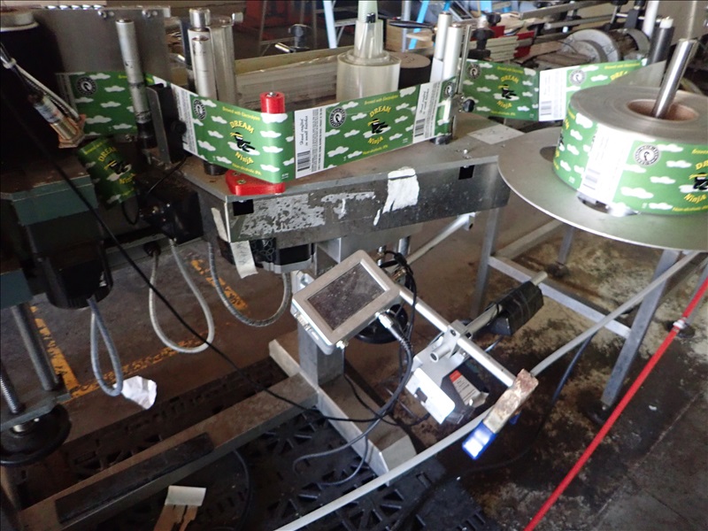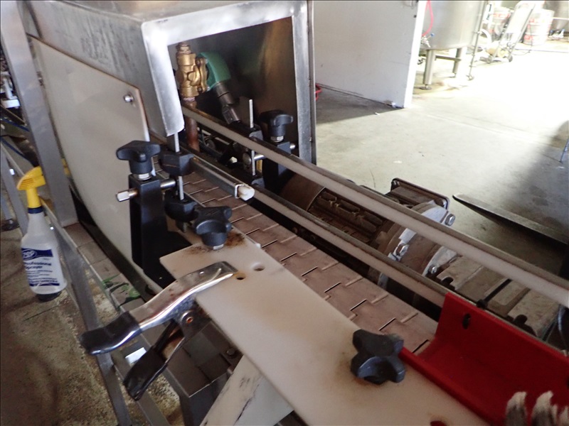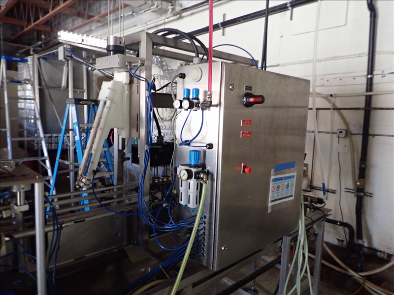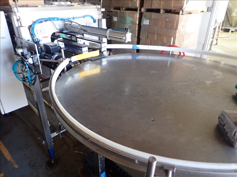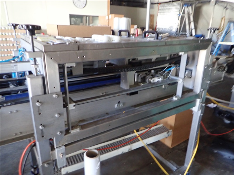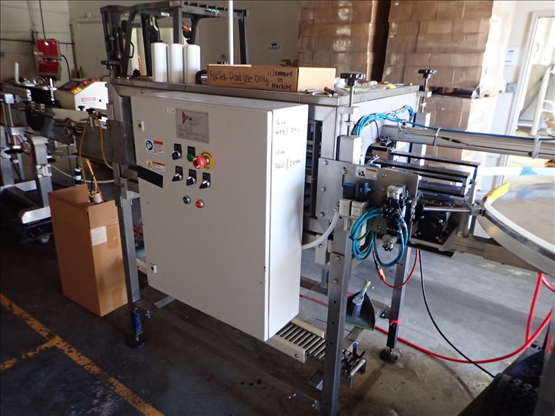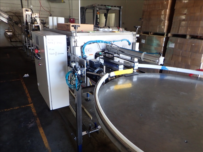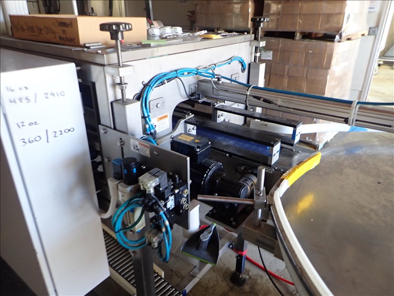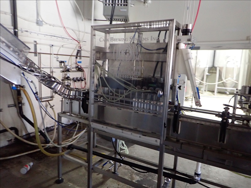 AUTOMATED CANNING LINE, DEPALLETIZER, SHAKE TABLE, TWIST RINSE, 5-HEAD FILLER, SEAMER, LABELETTE INLINE LABELER, PAKTECK CCA120 CAN CARRIER APPLICATOR, ACCUTEK 48" ACCUMULATOR, SET UP FOR 12 OZ OR 16 OZ