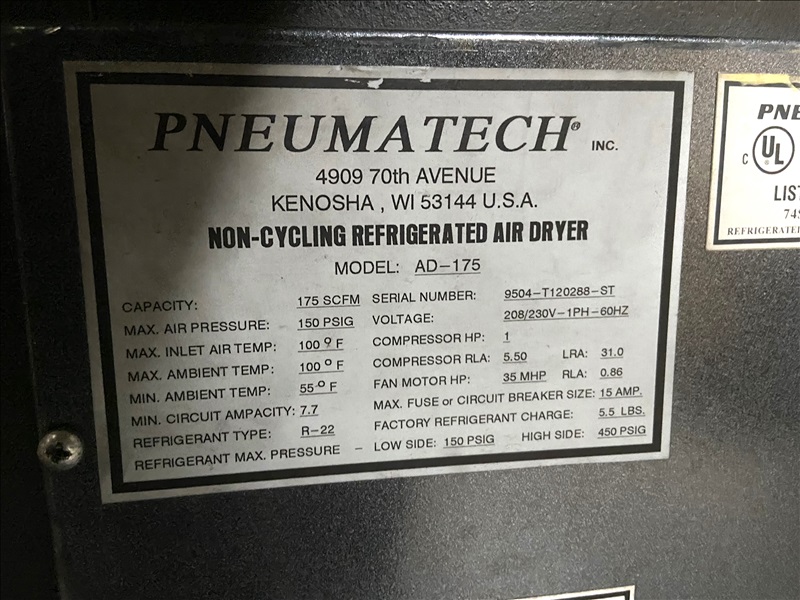 NON-CYLCING REFRIGERATED AIR DRYER, 1 HP, 208-230V, 1-PH