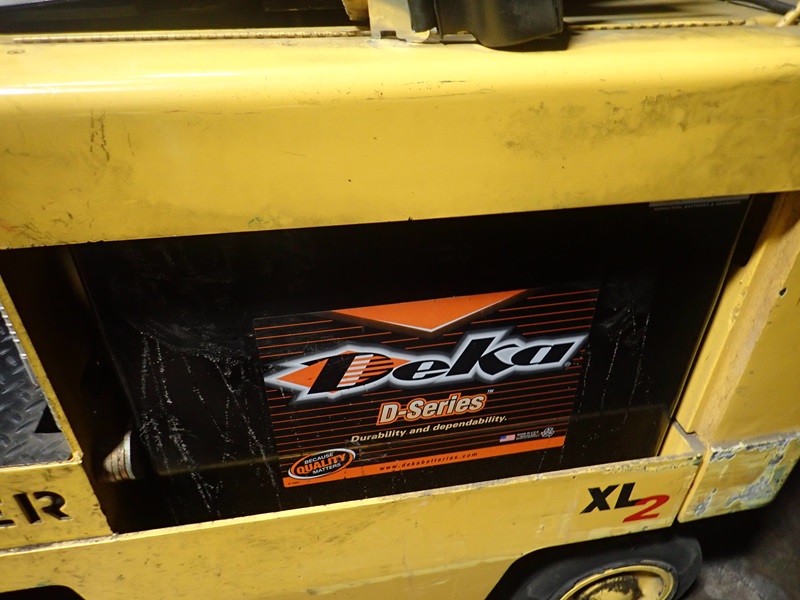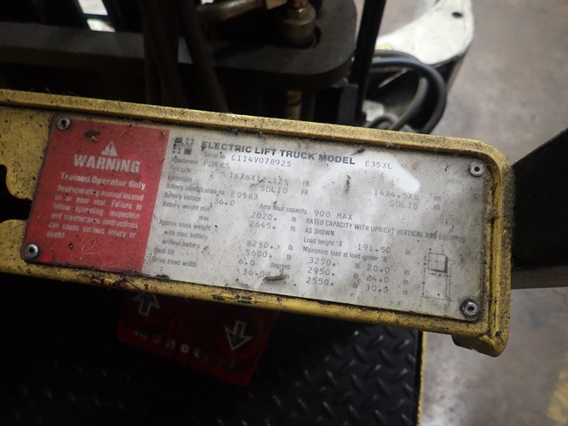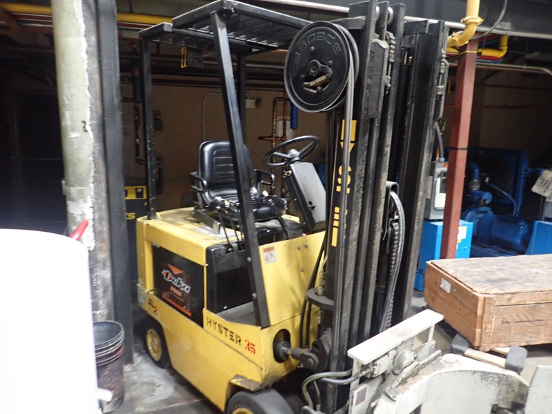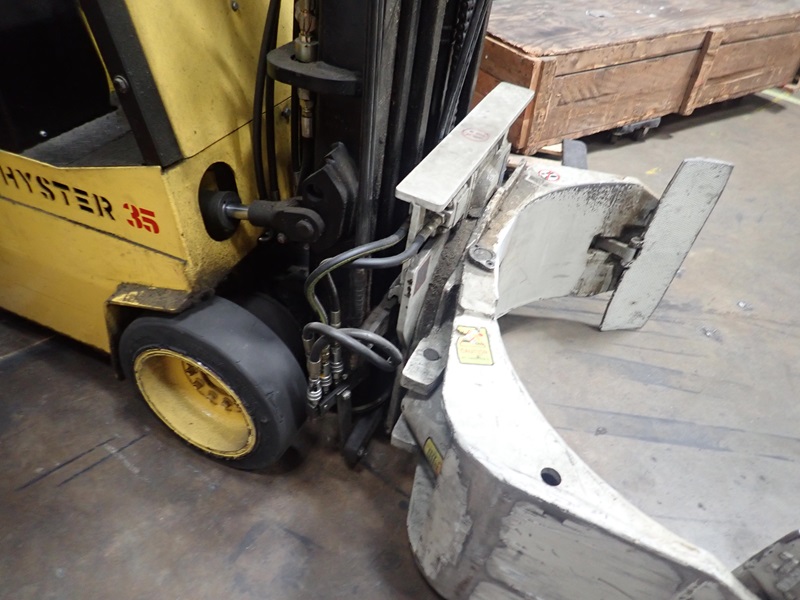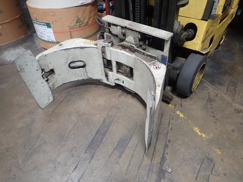 3,250 LB CAP SOLID TIRED ELECTRIC FORKLIFT, 119" 3-STAGE MAST, CASCADE ROLL CLAMP, MONOTROL, HOBART CHARGER & DEKA BATTERY