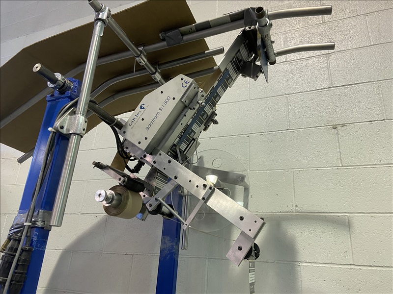 NEWSPAPER NOTES LABELING MACHINE MOUNTED ON CART, 120V
