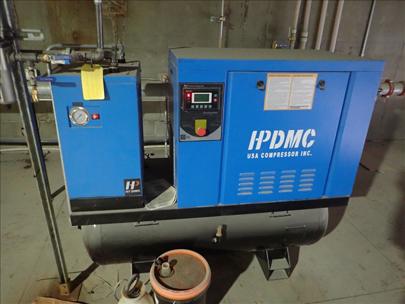 10HP ROTARY SCREW AIR COMPRESSOR W/AIR DRYER & HORIZONTAL RECEIVER TANK