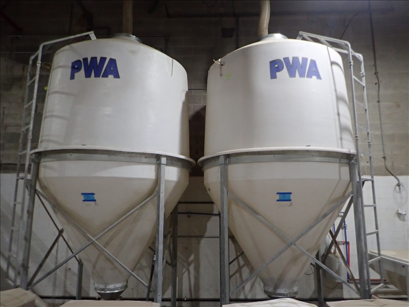 (2) 2021 PWA POLY SILOS W/HOPPER & CHORETIME FLEX AUGER CONVEYOR