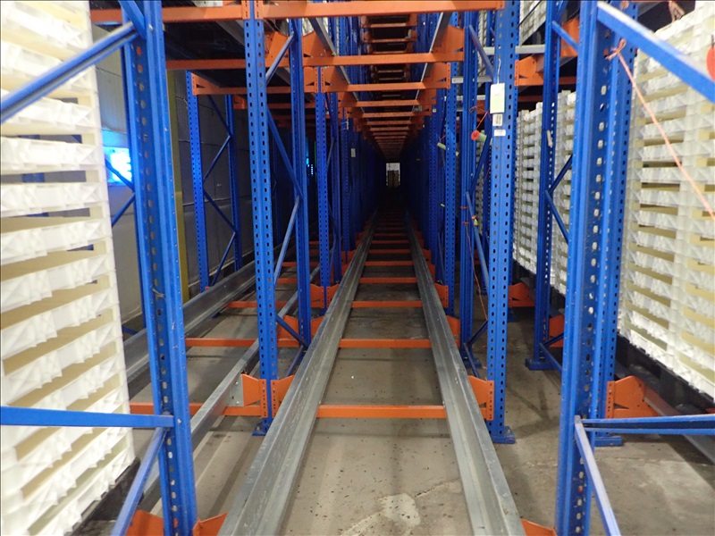 APPROX. 155'X20'H 2-TIER ADJUSTABLE HEIGHT HIGH DENSITY PALLET RACKING W/ROBOT TRACK