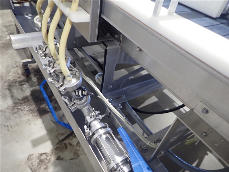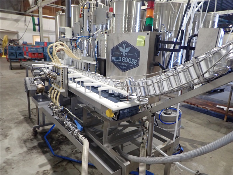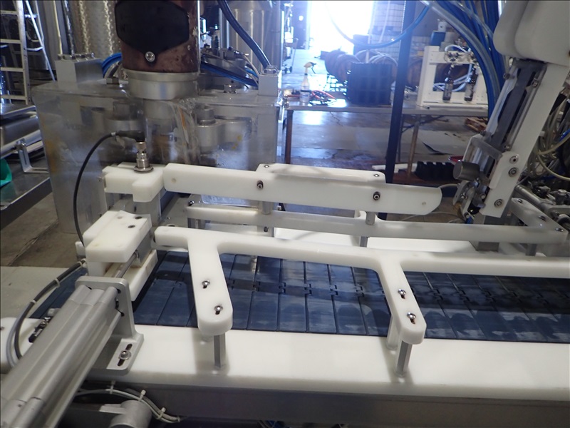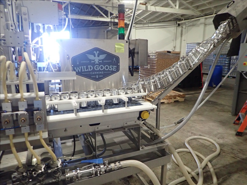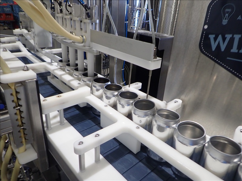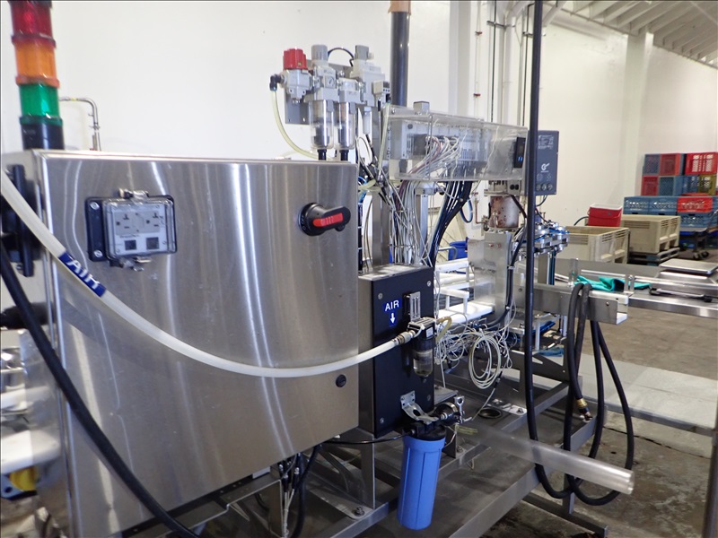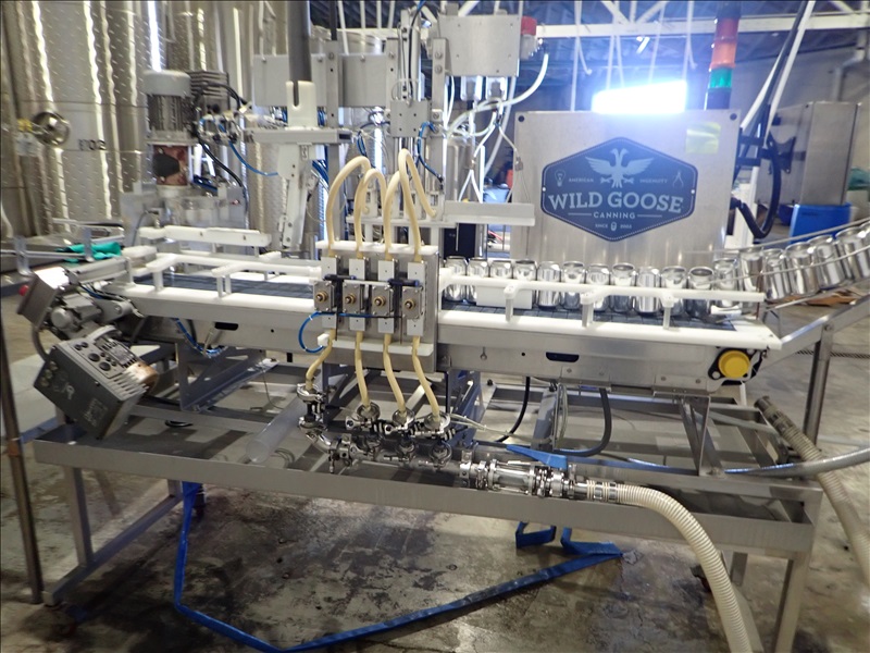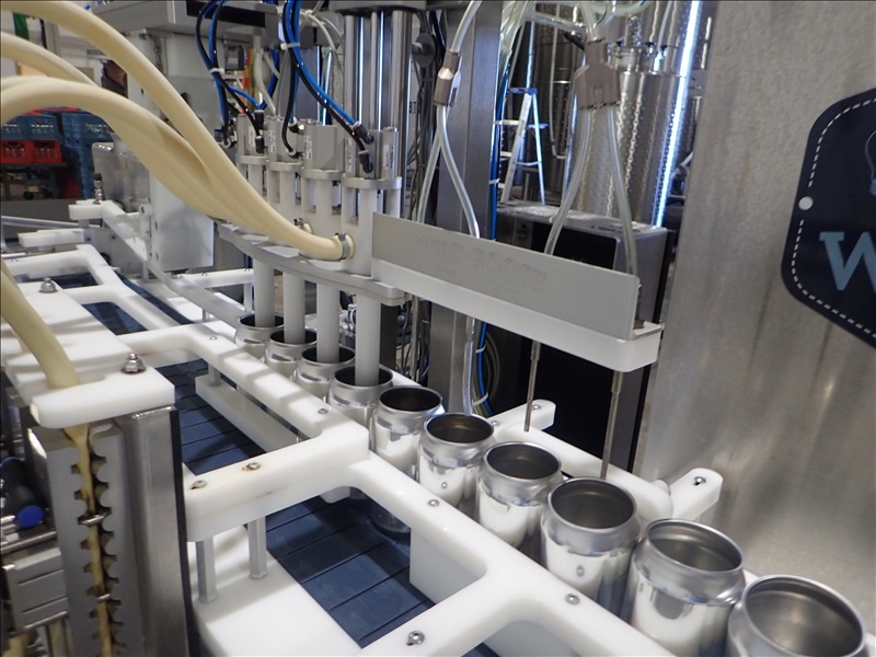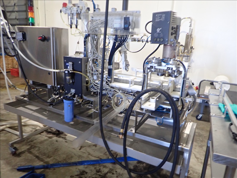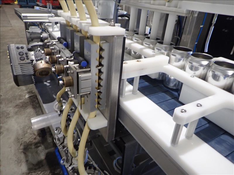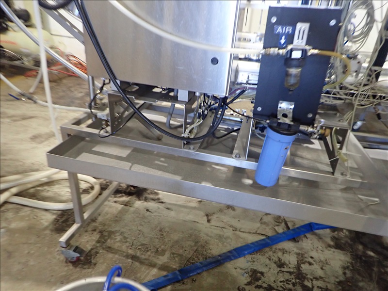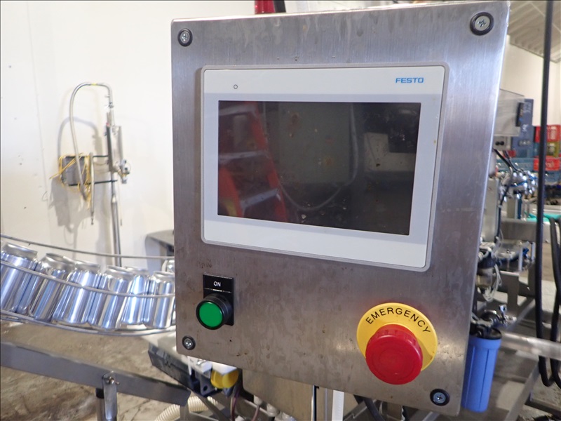 4-HEAD SEMI-AUTOMATIC CAN FILLER, SEAMER, FESTO CONTROLS, ON CASTERS
