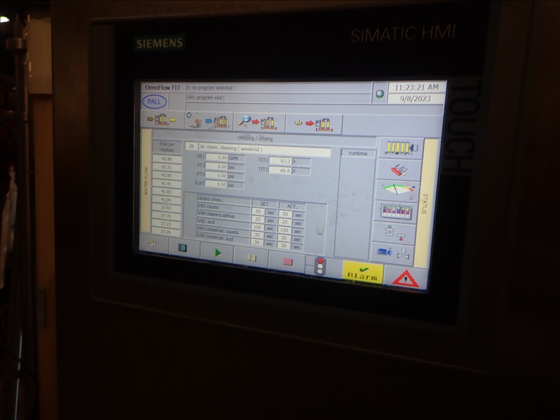 CROSS FLOW FILTER, (2) MICROZA WUSP-6443 MODULES, CONCENTRATION TANK, SIEMENS SIMATIC HMI CONTROLS, ON CASTERS, S/N: K50021105