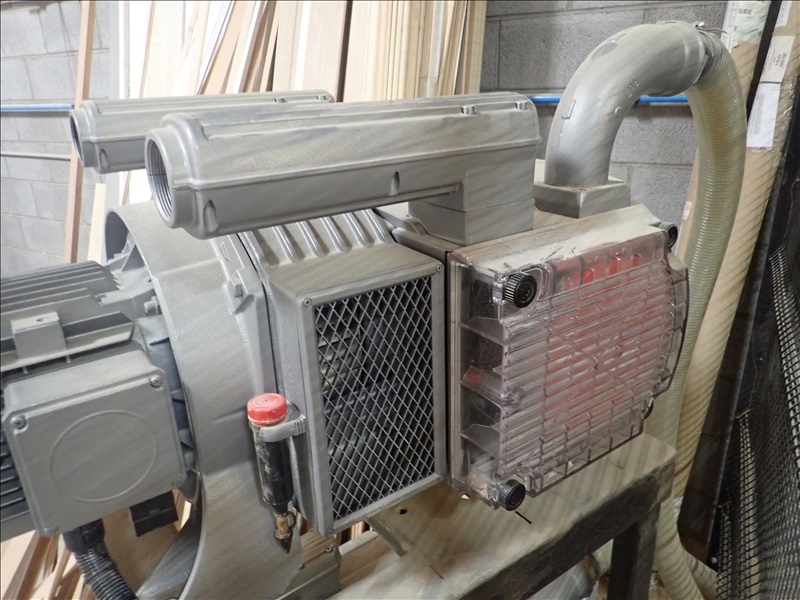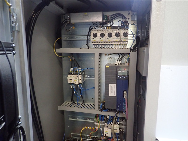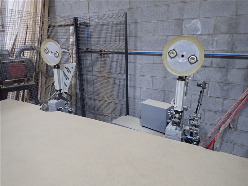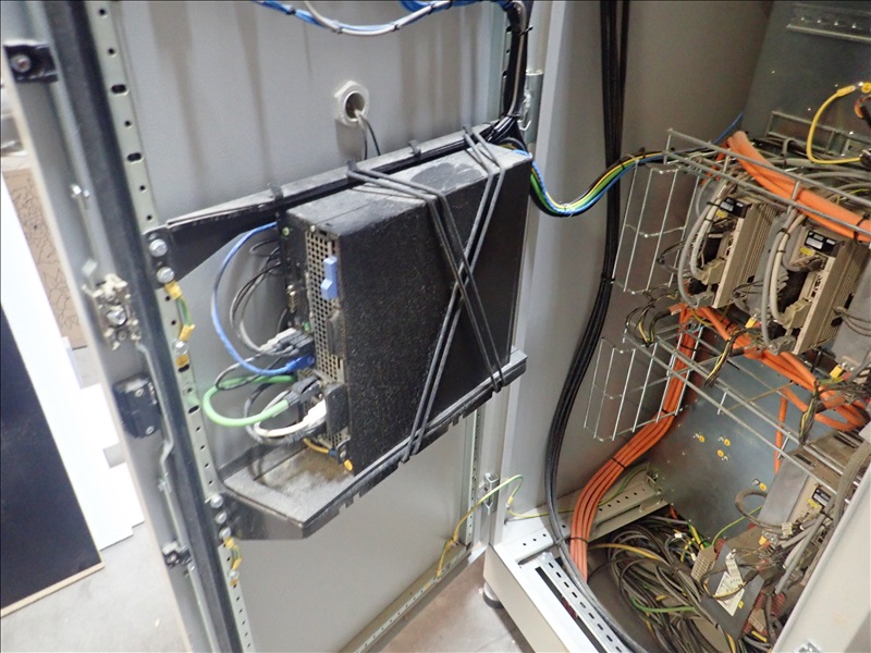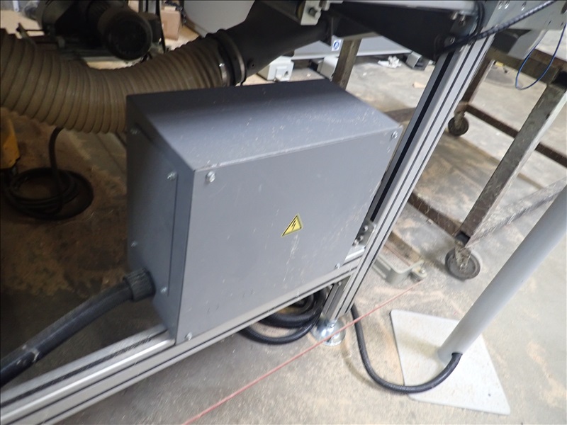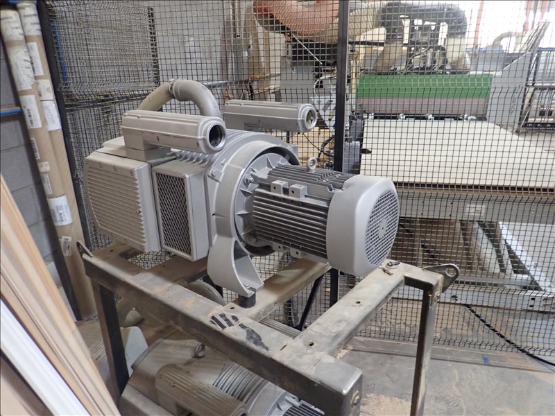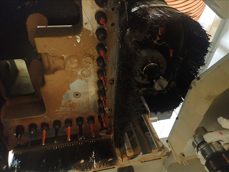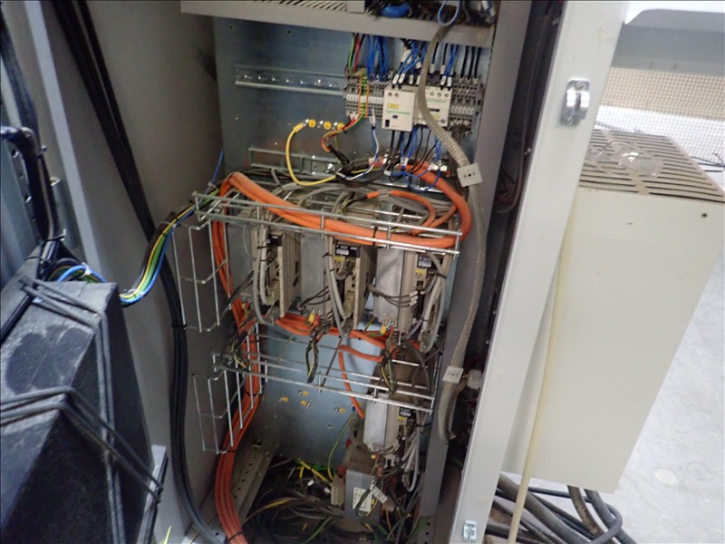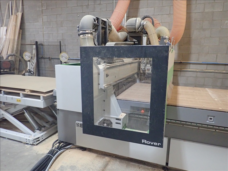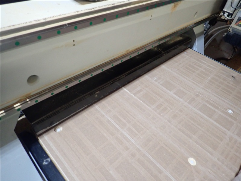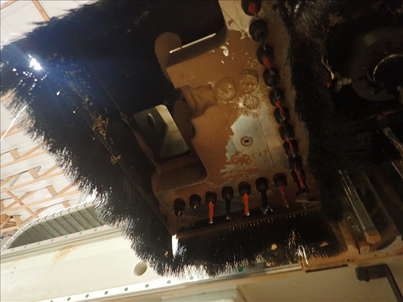 SINGLE HEAD CNC ROUTER, 4'X8' TABLE, 12-STATION ATC, 18-SPINDLE DRILL, SCISSOR LIFT, INFEED TABLE W/VACUUM LIFTERS, 4-CUP VACUUM PREFEED, OUTFEED BELT CONVEYOR, (2) BECKER VTLE-2.250 VACUUM PUMPS, REER VISION LASER CURTAINS, CAGE, CONTROLS