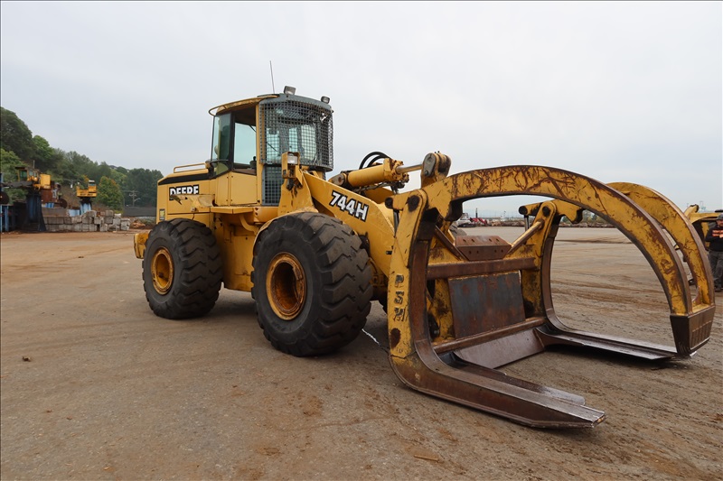 ARTICULATED RUBBER TIRE WHEEL LOADER, PSM 43869 HYDRAULIC LOG LOADER, ENCLOSED CAB