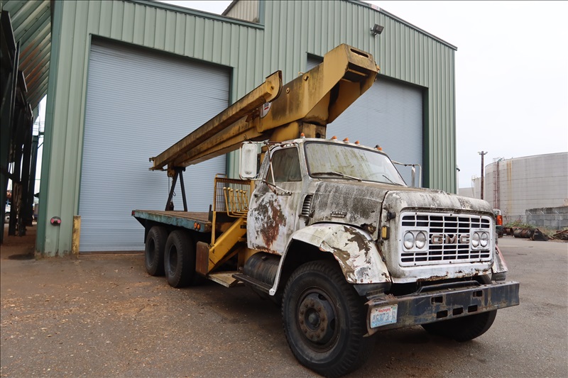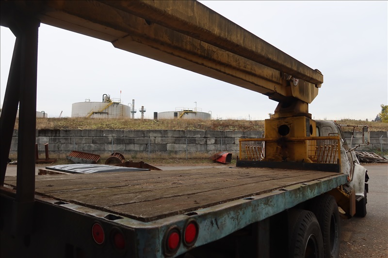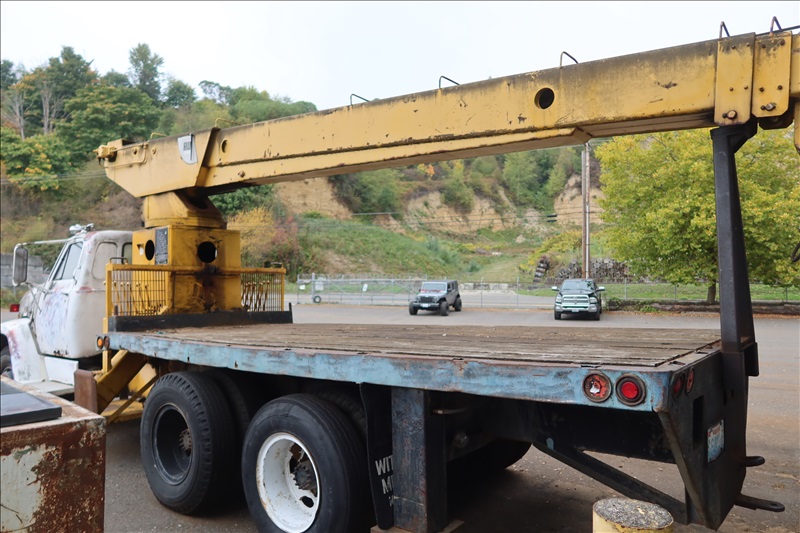 T/A FLATBED BOOM TRUCK, GAS, AUTO, RO TC1204C HYDRAULIC, 3-STAGE, SINGLE JIB BOOM, FRONT & REAR OUTRIGGERS