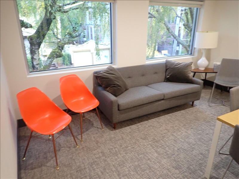 PADDED SOFA, (2) SIDE CHAIRS, SIDE TABLE, LAMP, PILLOWS