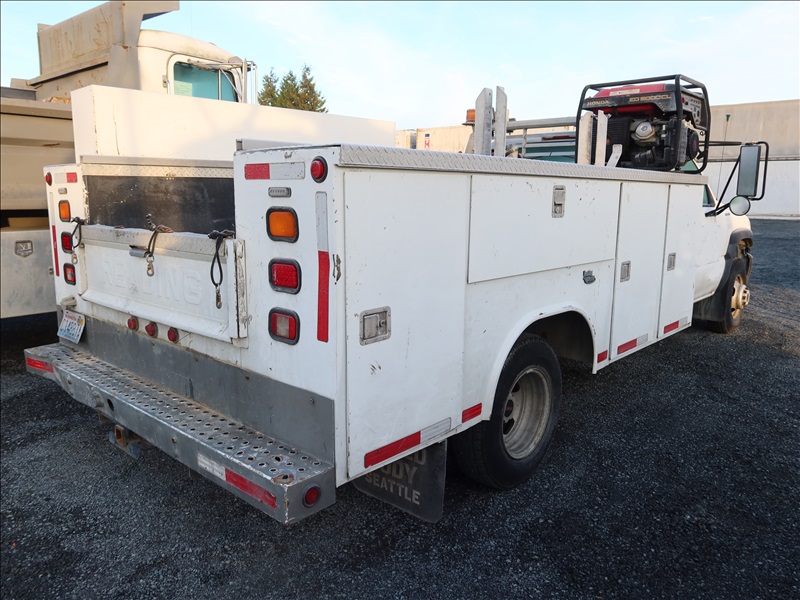 SERVICE BODY, DURAMAX, AUTO, HONDA EG5000CL GENERATOR, TRANSFER TANK W/PUMP (CHECK ENGINE LIGHT IS ON)