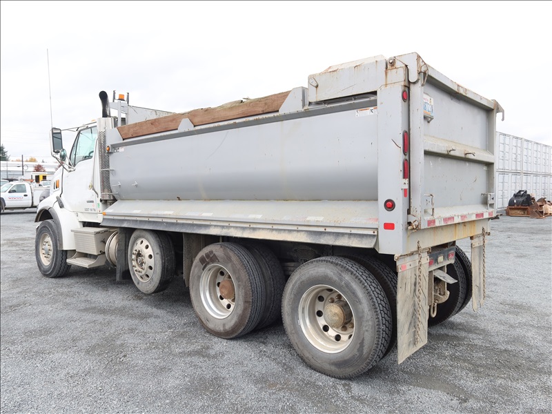 TRI/A, DUMP TRUCK, 14' STEEL BOX, HIGH LIFTGATE, 466 HP, CAT C15, 18 SPD, 212" W/B, 18,000 LB FRONT, 46,000 LB REARS, DROP AXLE, A/B