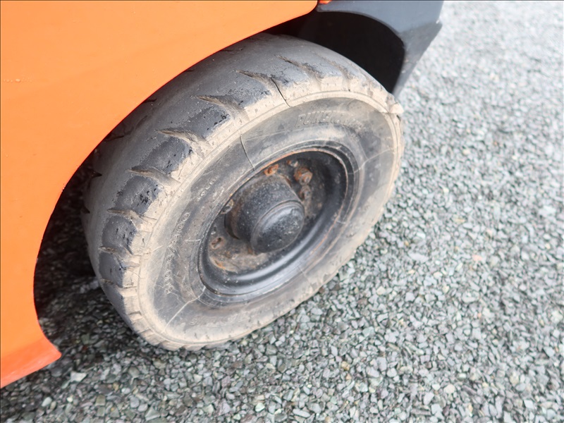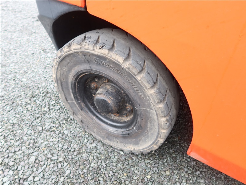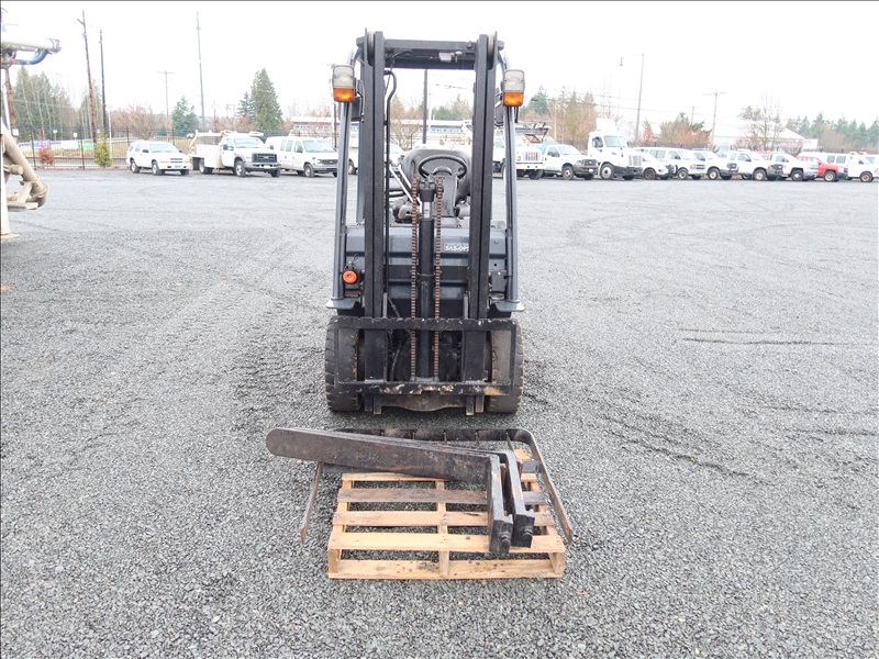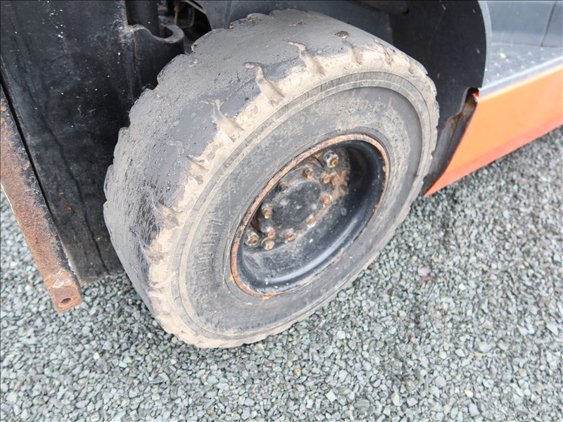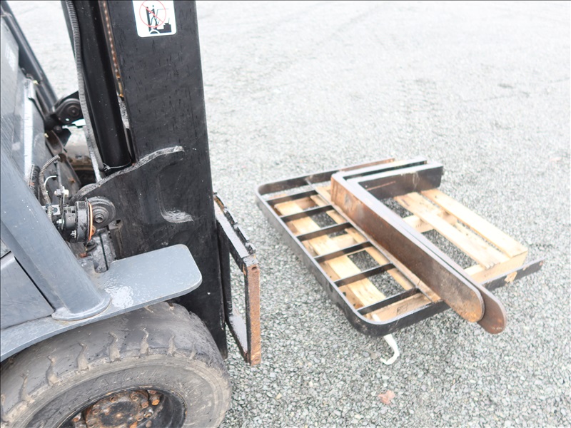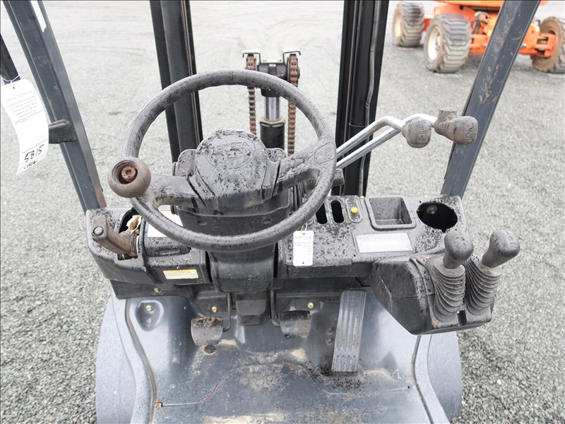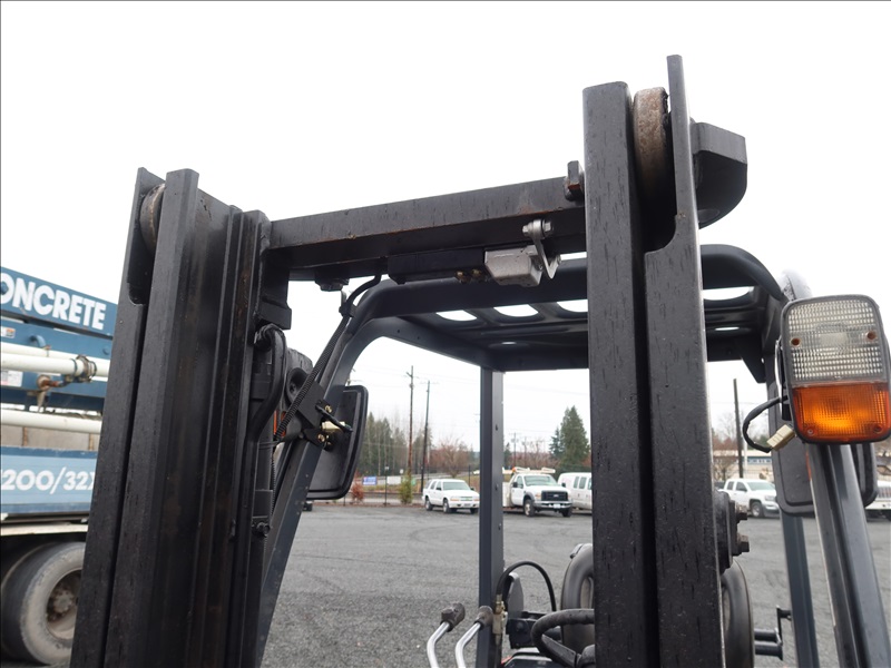3,858 LB SOLID CUSHION TIRE FORKLIFT, 2-STAGE MAST, 4 CYL LPG (NO FORKS, DATA PLATE MISSING, NO PROPANE TANK)