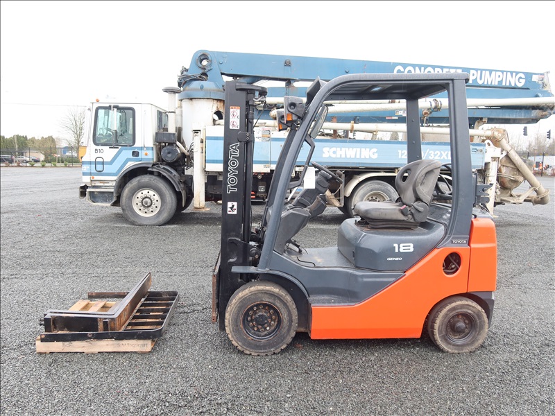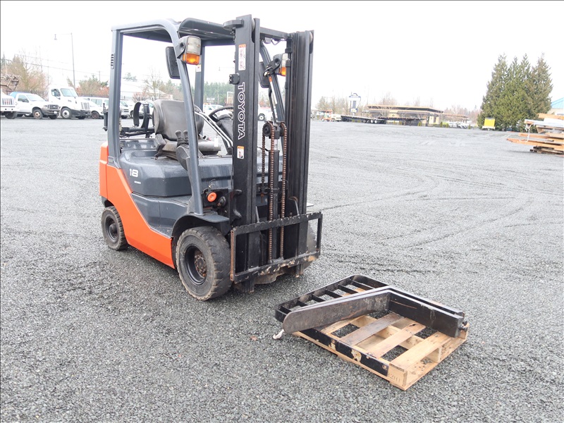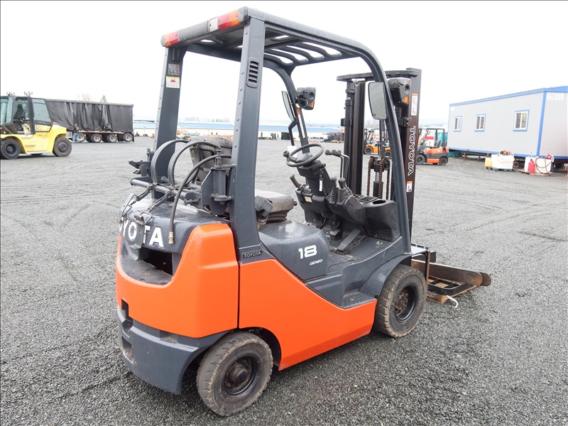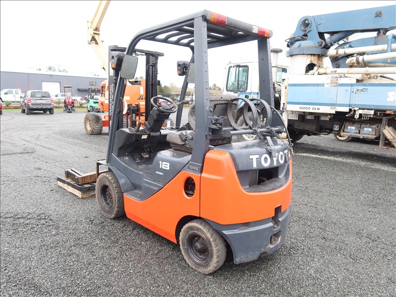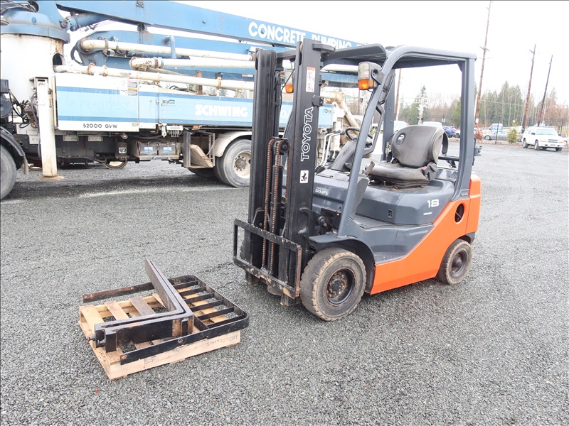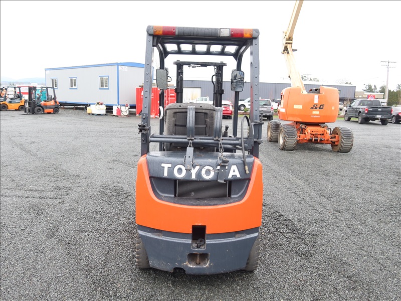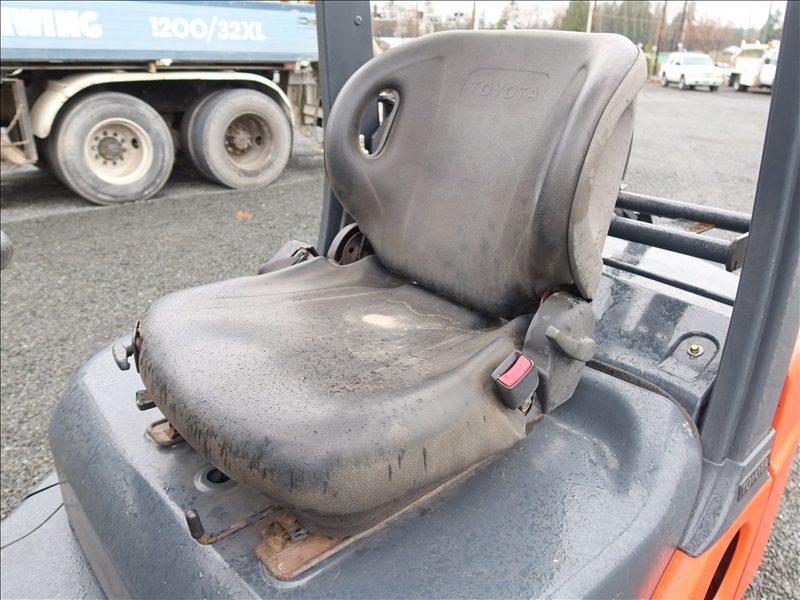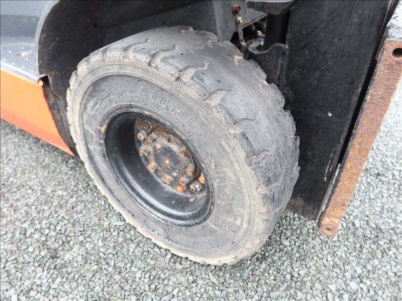 3,858 LB SOLID CUSHION TIRE FORKLIFT, 2-STAGE MAST, 4 CYL LPG (NO FORKS, DATA PLATE MISSING, NO PROPANE TANK)