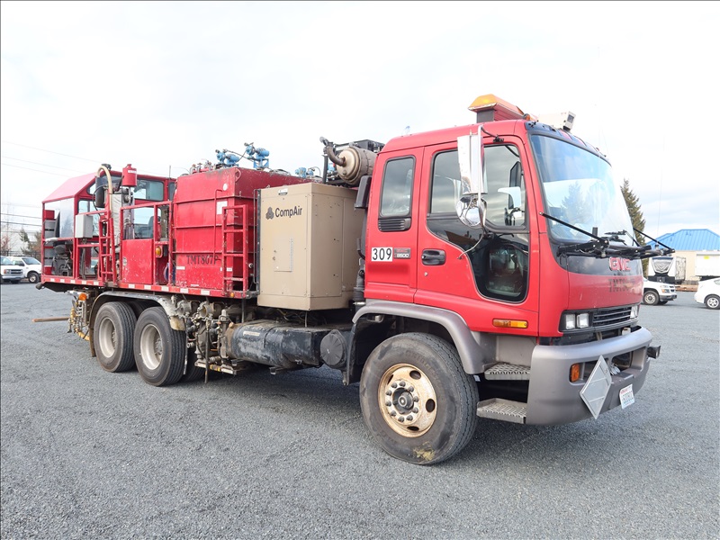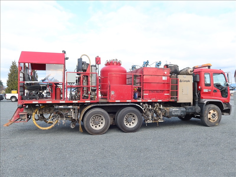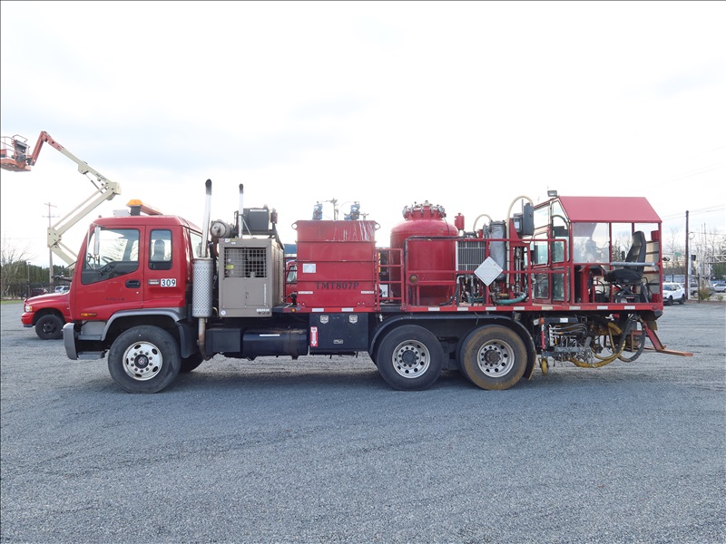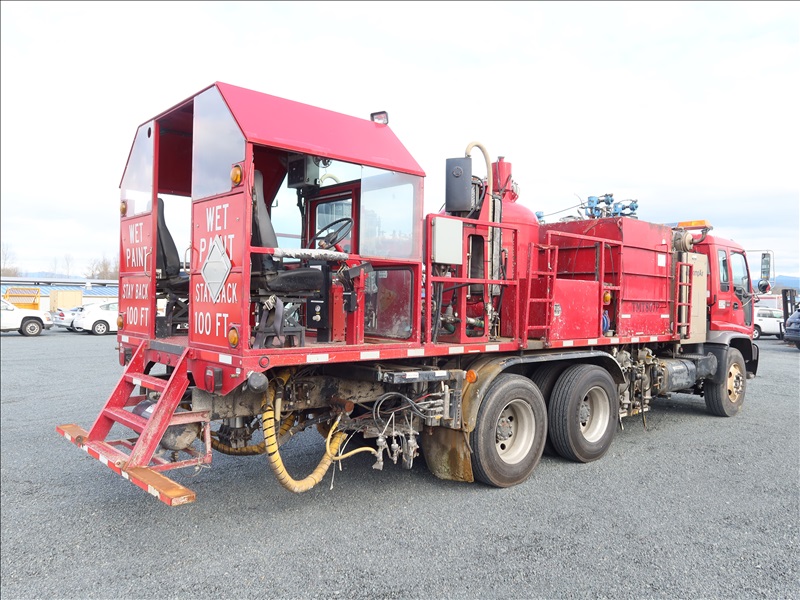 T/A TMT807P PAINT STRIPING TRUCK, LEROIN COMPRESSOR 250 AIR COMPRESSOR, DUAL PAINT STATIONS, CAT 3126, AUTO, SPRING BEAM SUSPENSION, A/B, HOUR METER READS: 9,024 (**SECONDARY ODO READS: 158,666**)
