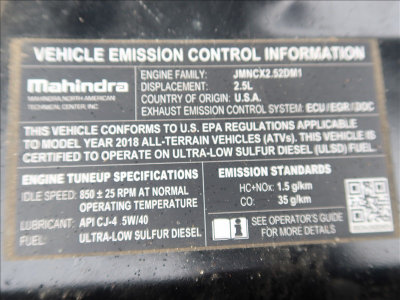 4X4 UTV, 62 HP 2.5 TURBO DIESEL, 5 SPD, WINCH (*OFF ROAD USE ONLY, ODOMETER & HOUR METER INOPERABLE*)