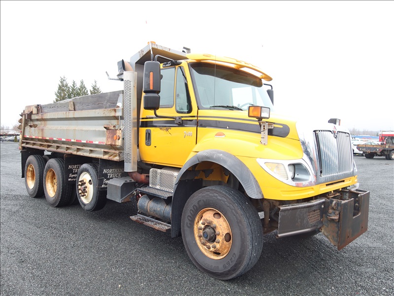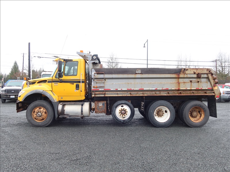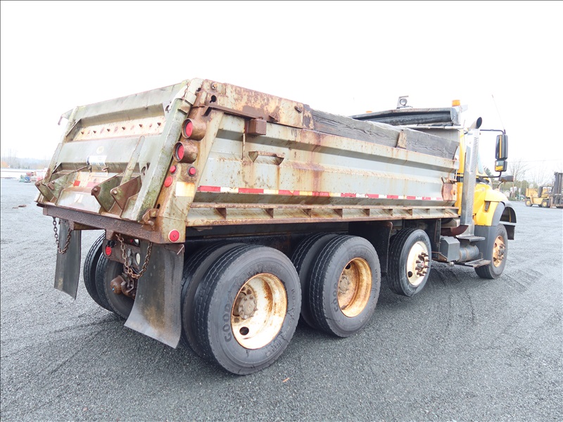 TRI/A DUMP TRUCK, 16' STEEL BOX, HIGH LIFTGATE, TARP SYSTEM, CAT C13, AUTO, HAULMAXX SUSPENSION, 217" W/B, 16,540 LB FRONT, 40,000 LB REARS, DROP AXLE, PLUMBED FOR PUP, A/B