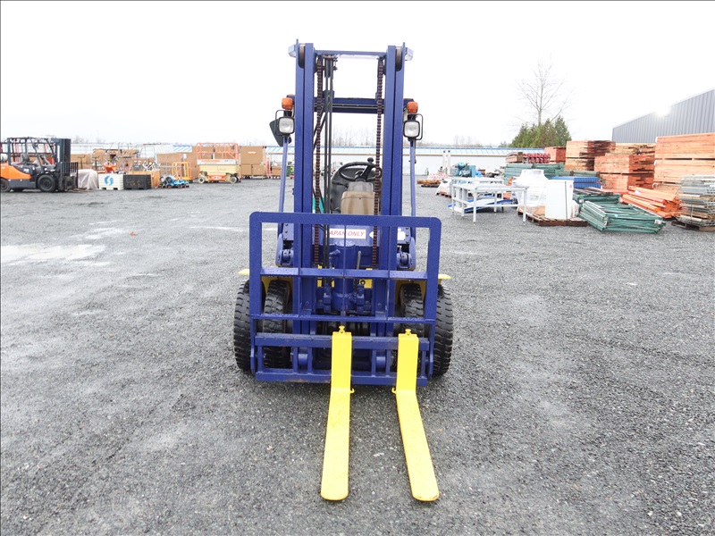 5,070 LB DUAL PNEUMATIC TIRE FORKLIFT, 140" FORK HEIGHT, 2-STAGE MAST, TILT CARRIAGE, 4 CYL GAS