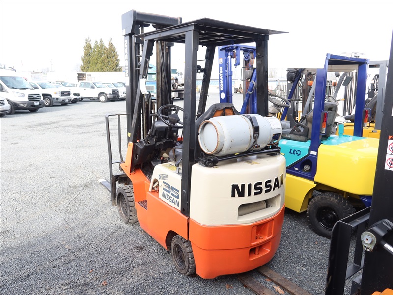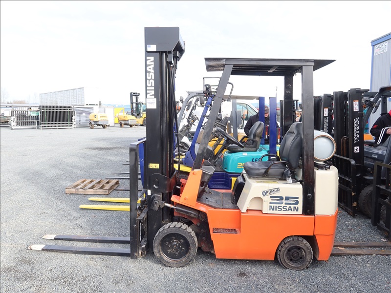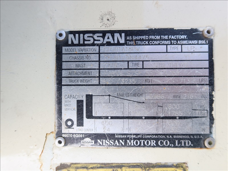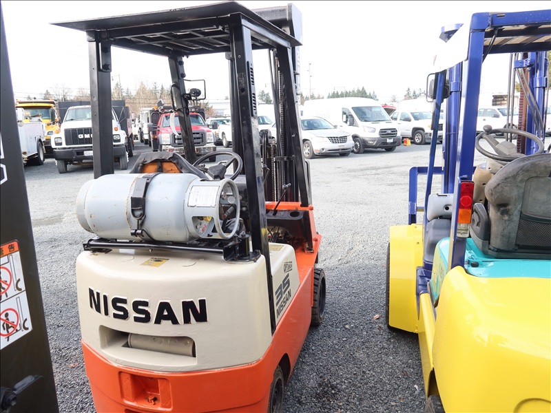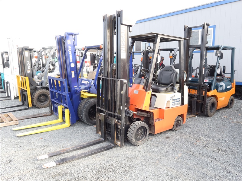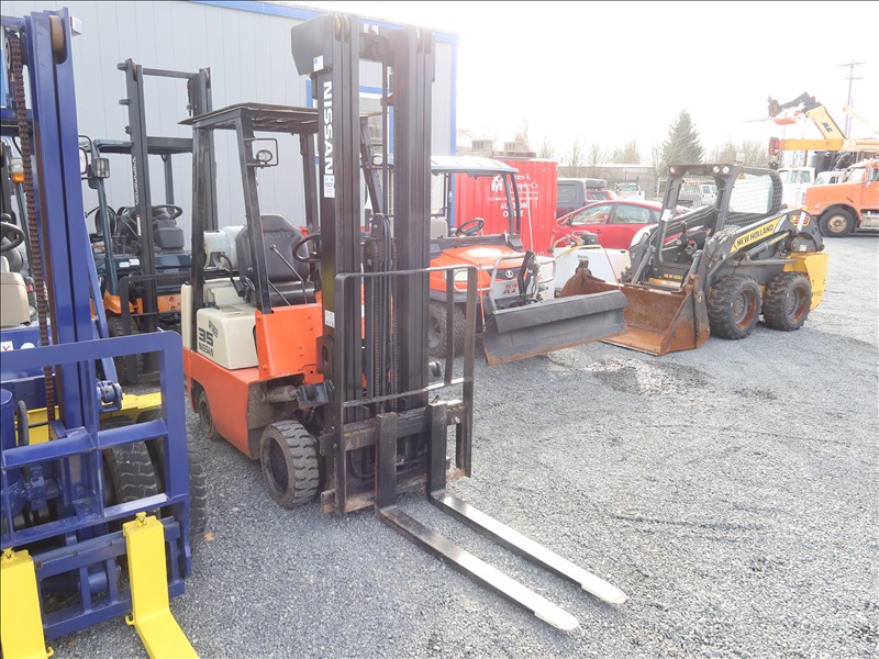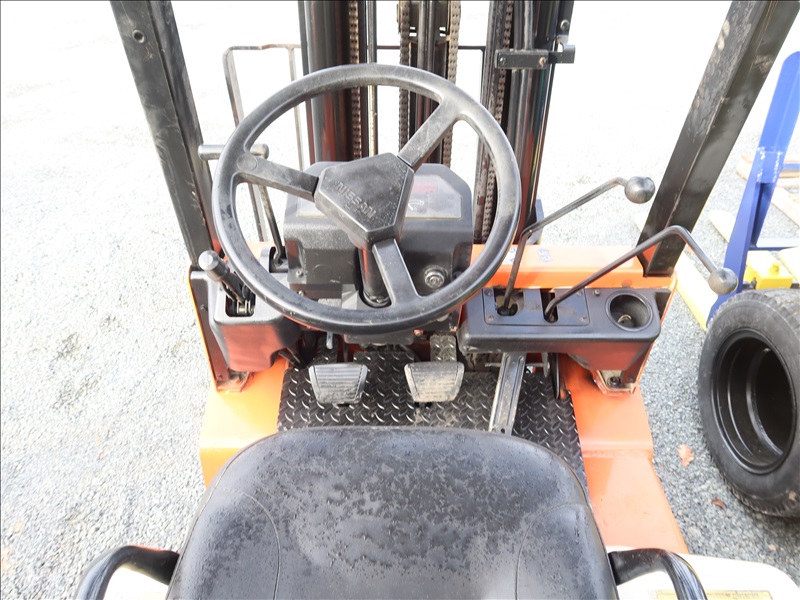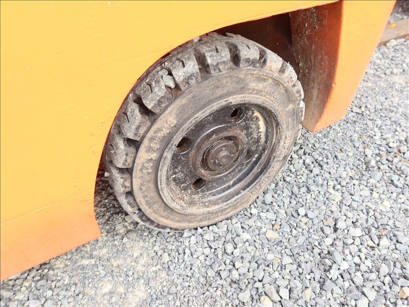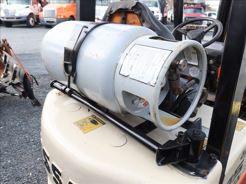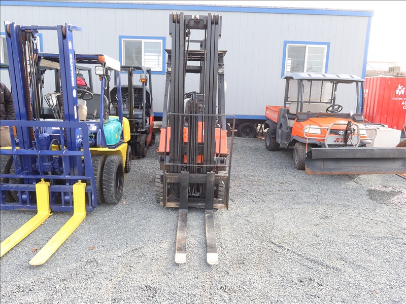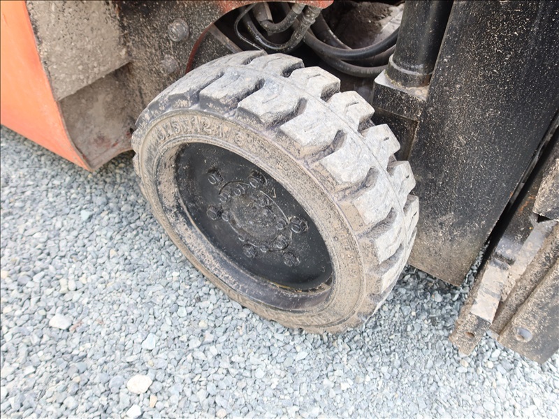 2,200 LB SOLID TRACTION TIRE FORKLIFT, 216" FORK HEIGHT, 3-STAGE MAST, SIDE SHIFT, 4 CYL, LPG