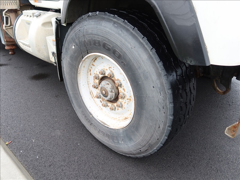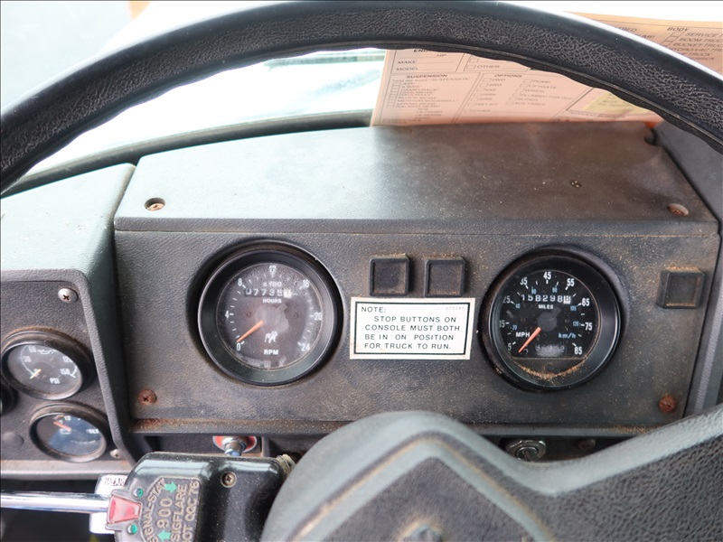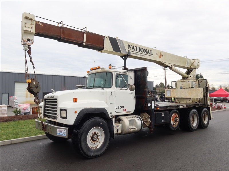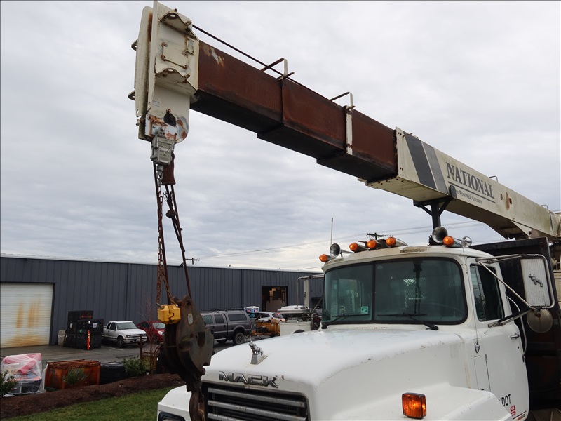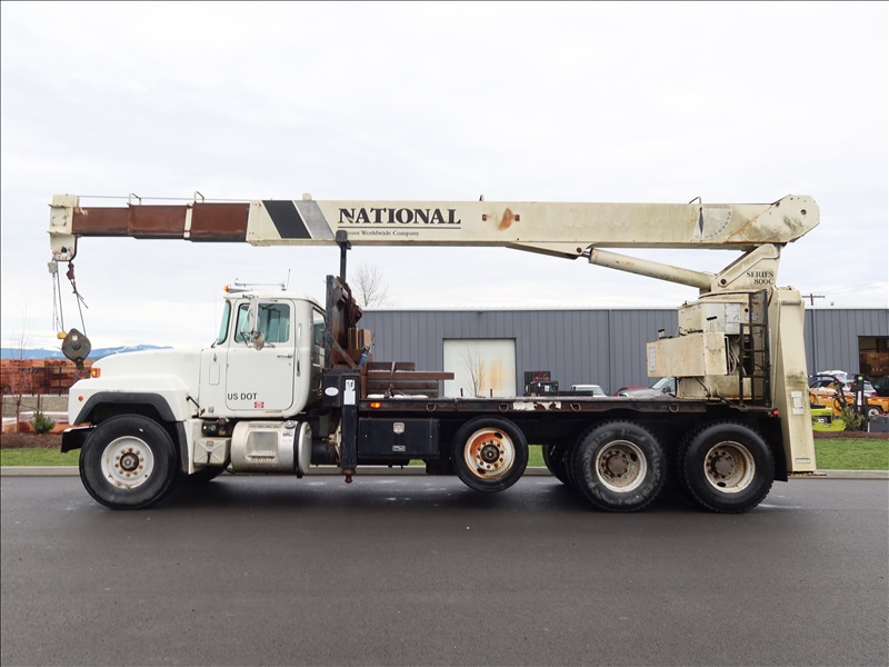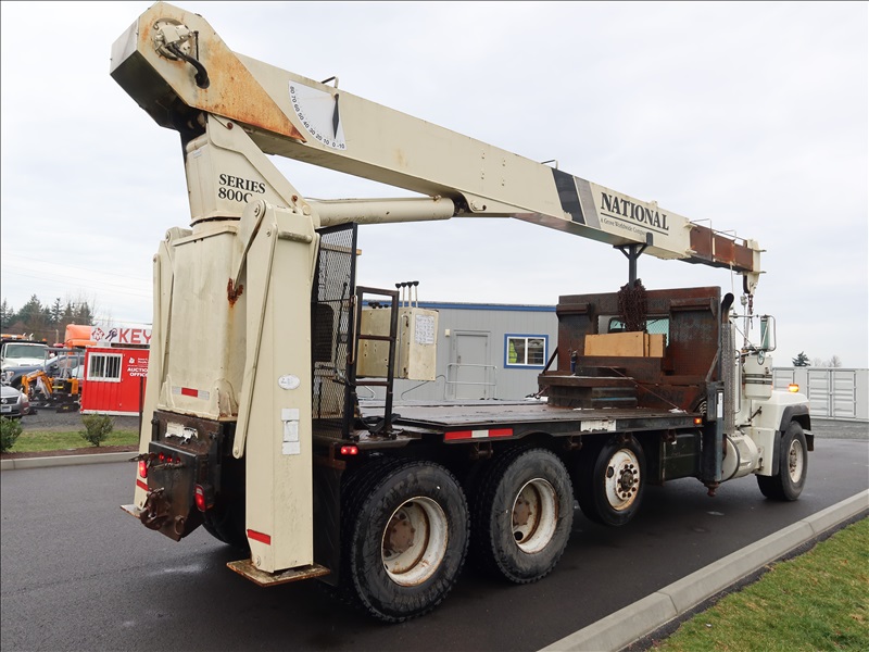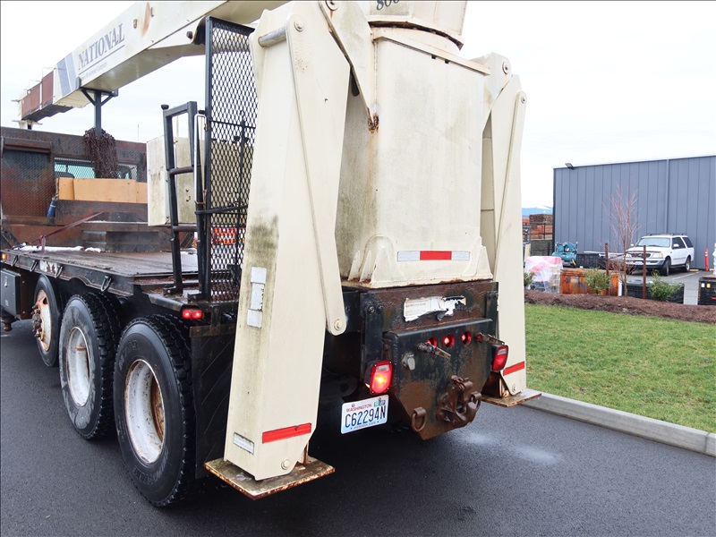 TRI/A BOOM TRUCK, 400 E7-400, 18 SPD, NATIONAL 880C 42,000 LB CRANE, 58' 4-SECTION BOOM, ANTI TWO BLOCK, OUTRIGGERS, 13' FLATBED, CAMELBACK SUSPENSION, 249" W/B, DROP AXLE, A/B