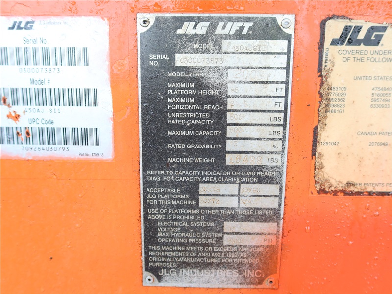 4WD ARTICULATED BOOM LIFT, 45' PLATFORM HEIGHT, 24'6" HORIZONTAL REACH, 500 LB CAPACITY, A/C RECEPTICAL AT PLATFORM, DEUTZ D2011L03