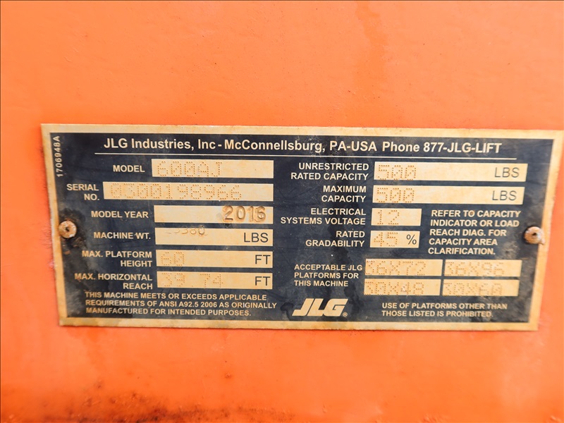 4WD ARTICULATED BOOM LIFT, 60' PLATFORM HEIGHT, 39'9" HORIZONTAL REACH, 500 LB CAPACITY, A/C RECEPTICAL AT PLATFORM, 67 HP DEUTZ TD2.9L