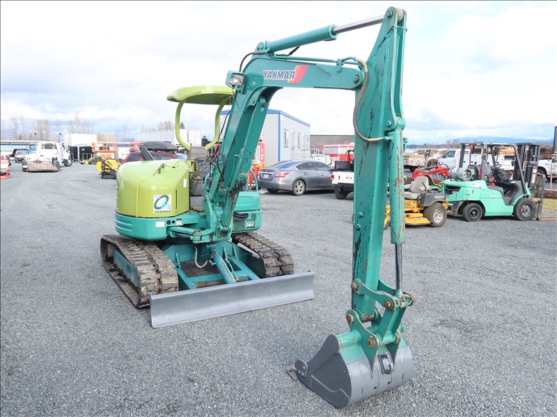 MINI EXCAVATOR, 32 HP YANMAR 3TNE88L SWING BOOM, 22" BUCKET, BLADE, RUBBER TRACKS, CANOPY (NOISY UNDER CARRIAGE)