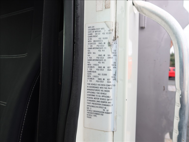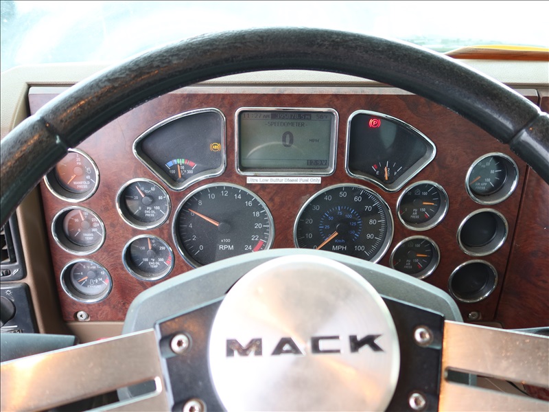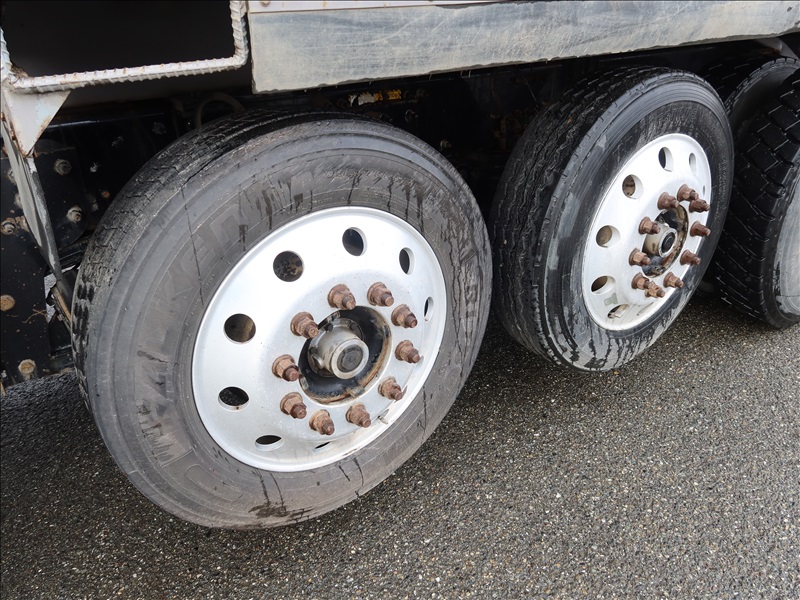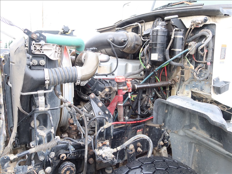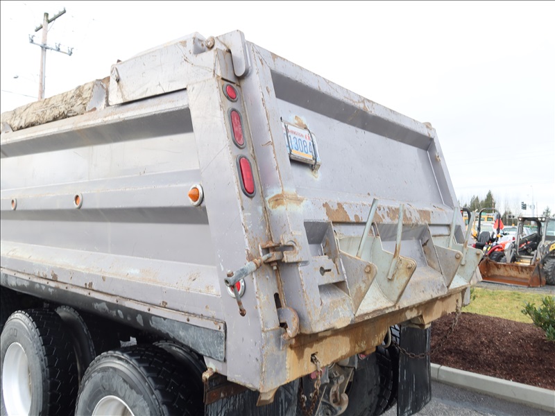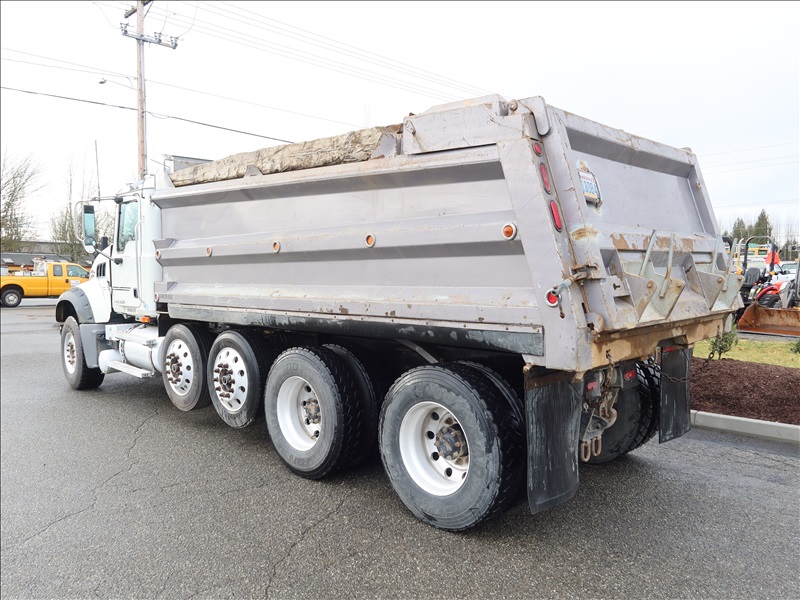 QUAD/A DUMP TRUCK, MP8 DIESEL, 18 SPD, 44,000 REARS, 18,000 FRONT, CAMELBACK SUSPENSION, (2) DROP AXLES, 16' 6'' STEEL BOX W/HIGH LIFT GATE, ASPHALT GATE, PLUMBED FOR PUP