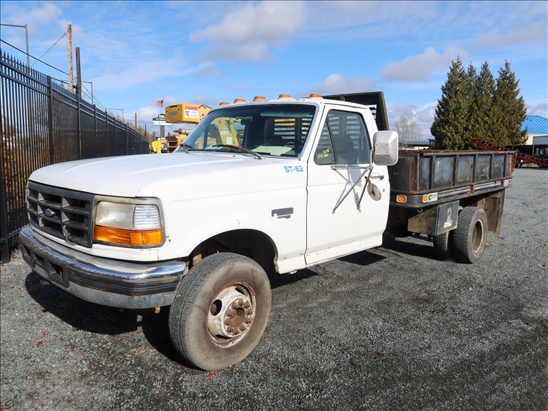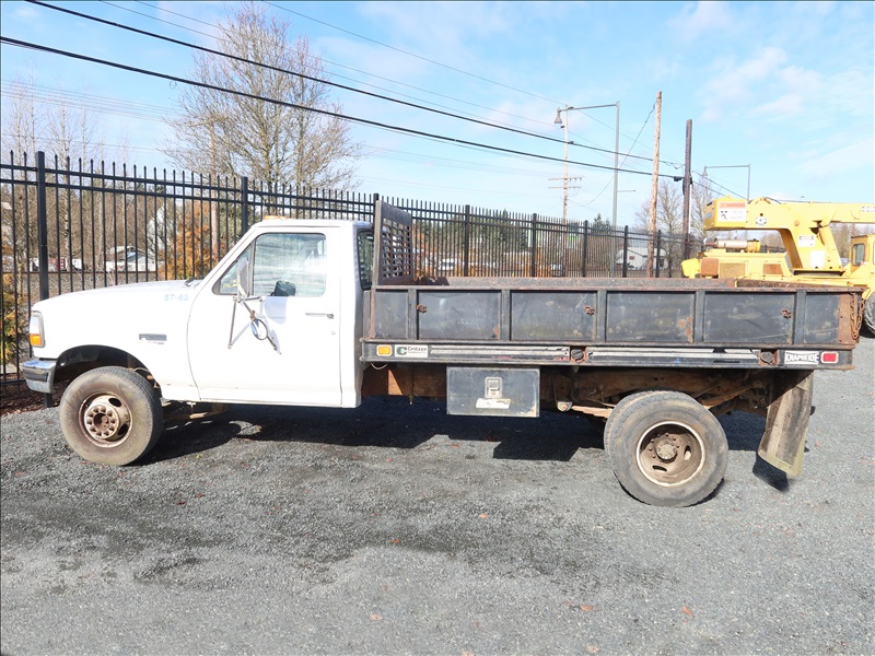 10' FLATBED, FORD POWER STROKE, 5 SPD, 2WD (*BUYER NEEDS TO OBTAIN A CERTIFIED WEIGHT SLIP TO LICENSE VEHICLE, TRANSMISSION ISSUES, NO REVERSE, PLEASE PREVIEW)