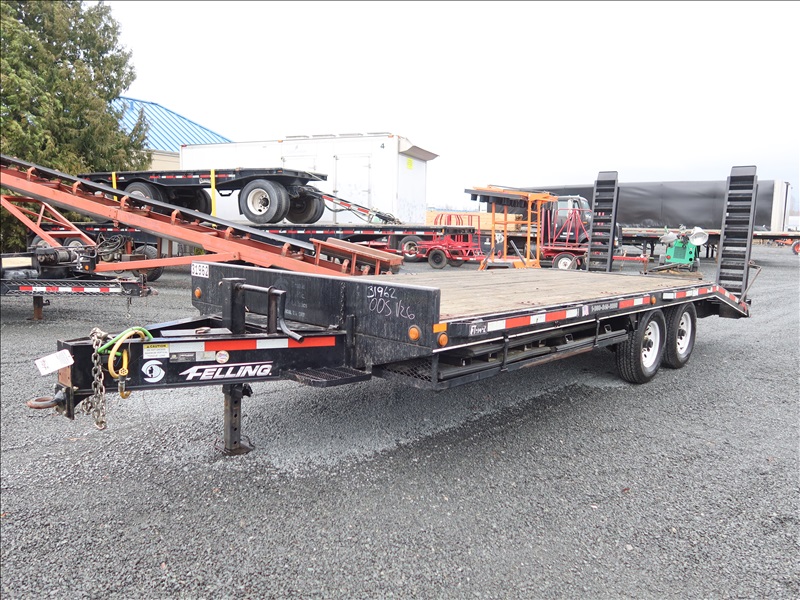 T/A, 21' X 8', 19,200 LB GVWR BEAVERTAIL EQUIPMENT TRAILER, 16' + 5' SPRING SUSPENSION, FOLD DOWN RAMPS, REMOVABLE SIDE BOARDS, ELECT BRAKES, 235/80R16